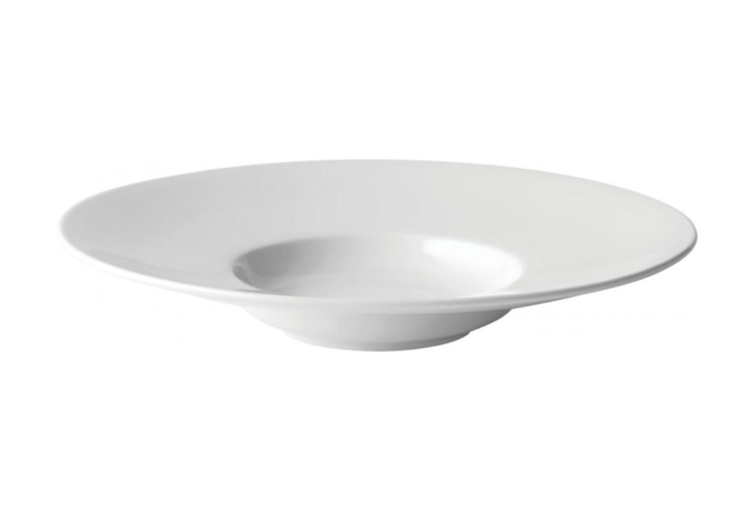 Специальные тарелки для пасты — это мелкие, но с широкими полями тарелки, диаметром около 20-25 см, с углублением в середине. Раньше пасту подавали в глубоких мисках, но к XX веку итальянские рестораторы стали использовать более мелкие тарелки с широкими краями, чтобы паста смотрелась красиво, а соус лучше раскрывал аромат.