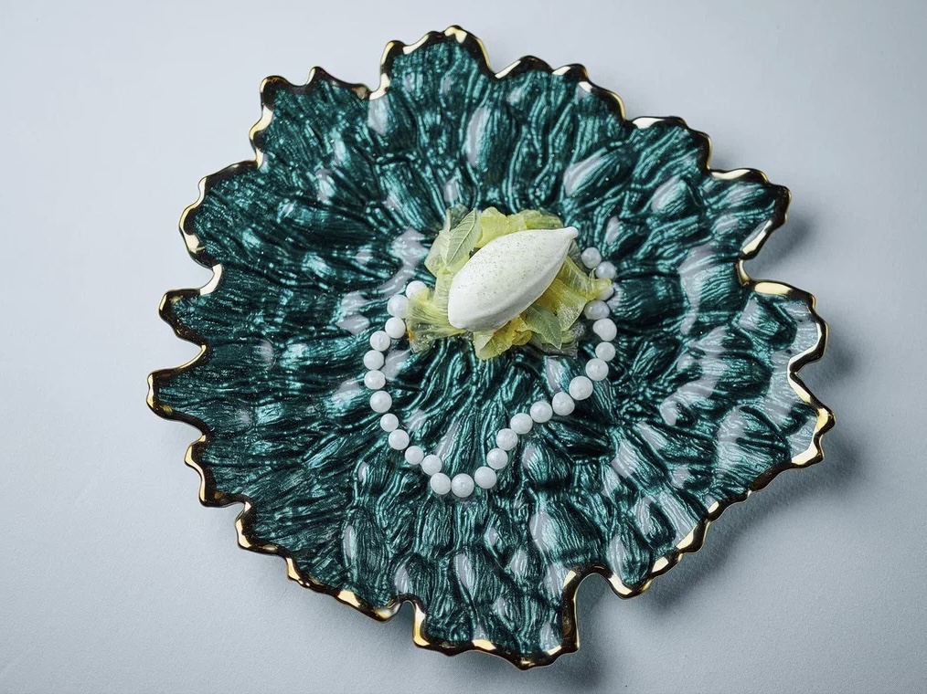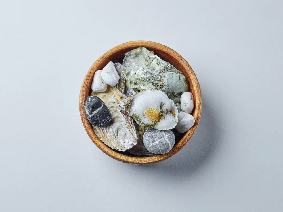 Всего в сете 12 курсов, а состоит он из двух «глав». Первая часть сета «Голод» базируется на природных ресурсах. Как раз здесь можно попробовать хлеб из желудей, а ещё улитки и устрицы, которые только сейчас получили статус «деликатеса», а до XIX века, как известно, считались едой бедняков и рабочего люда. Дюжина устриц стоила меньше буханки хлеба, а на столах знати и вовсе не рискнула бы появиться. Виноградных улиток тоже не обошла слава «из грязи в князи», ведь когда-то, во времена Столетней войны французские крестьяне не горели желанием умирать с голоду, а потому добрались и до улиток.Глава «Изобилие» из сета «Голод и Изобилие»