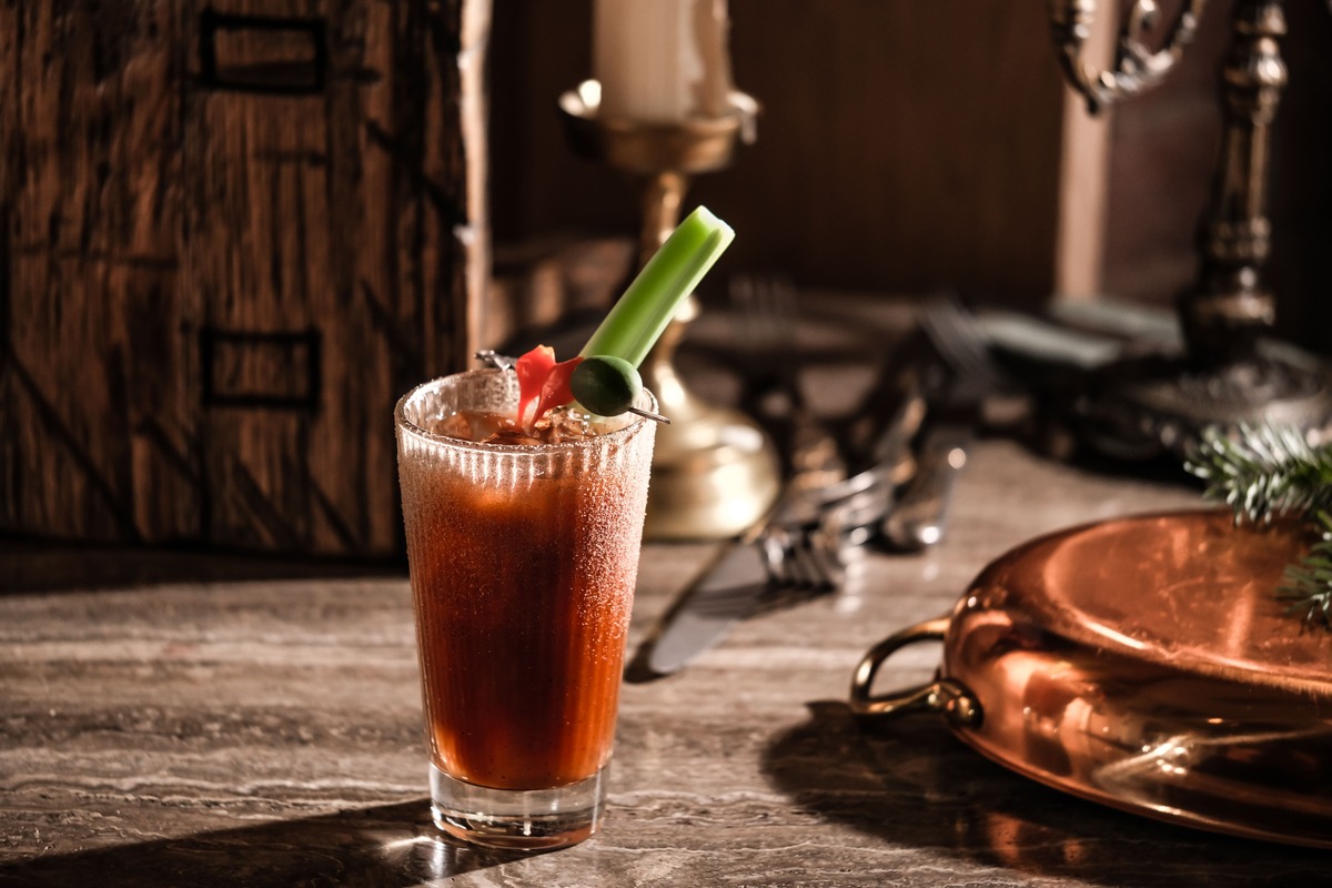 На фото – смелый коктейль Gazpacho на основе водки, настоянной на овощах и домашней копченой сангриты, приготовленной на трёх видах сока.