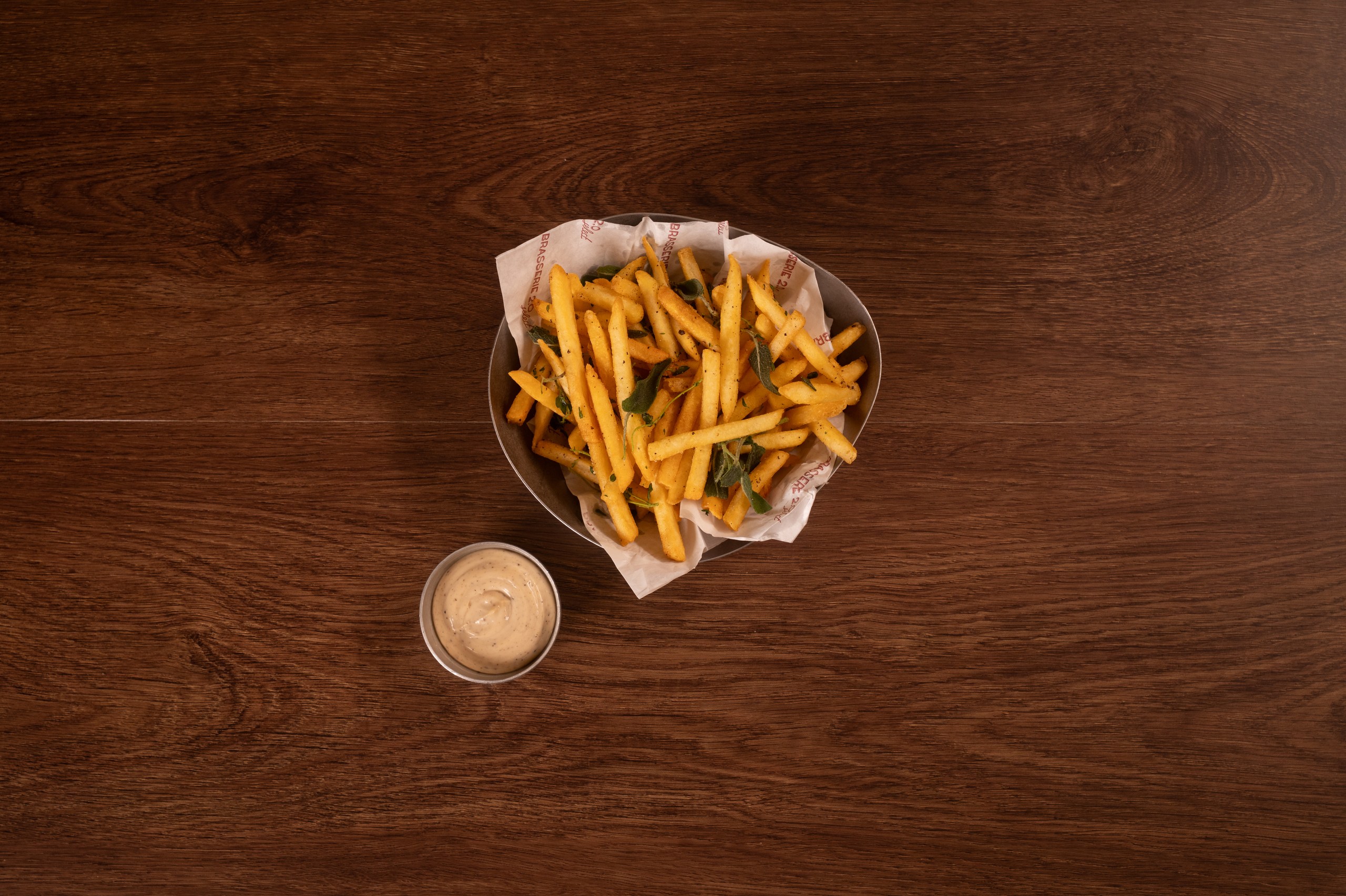 В ресторане подают картофель фри с розмарином — 480₽. В комплекте трюфельный майонез — маленькое guilty pleasure, от которого не отказываются и не проходят мимо.