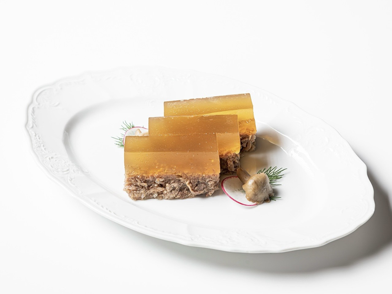 Перед тем как Dr. Живаго уйдет на ремонт, можно попрощаться со старыми стенами и заказать что-то простое, понятное и любимое. Для этого выбираем из новогоднего меню холодец из 3-х видов мяса (720₽), мимозу с угрем (1220₽), карасей, жаренных в сметане (1250₽), перепелку, фаршированную белыми грибами (1900₽) и фирменный оливье с соленым огурцом (620₽).