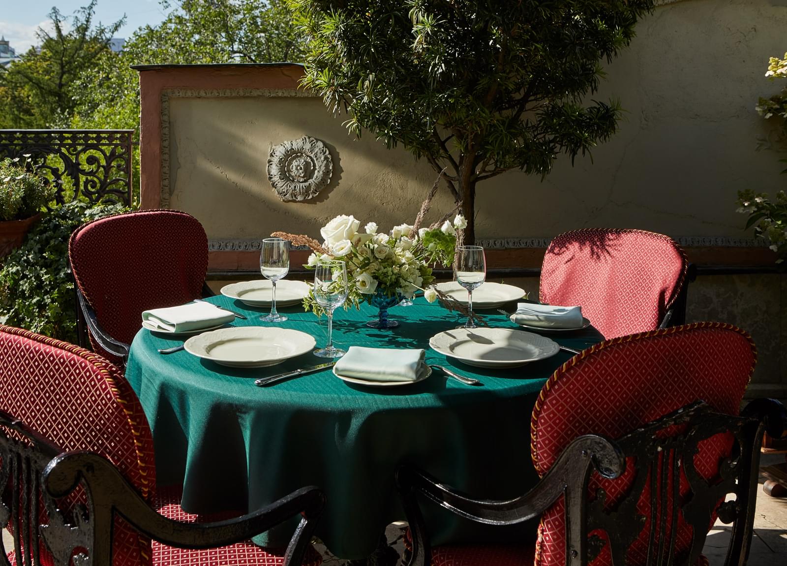 Небольшая терраса на 40 мест, утопающая в зелени, предлагает панорамный вид на Тверской бульвар. Это место идеально подходит для самых разных моментов дня: здесь можно провести деловую встречу или устроить семейный обед. Идеальное место для романтических вечеров. Ну это Пушкин!