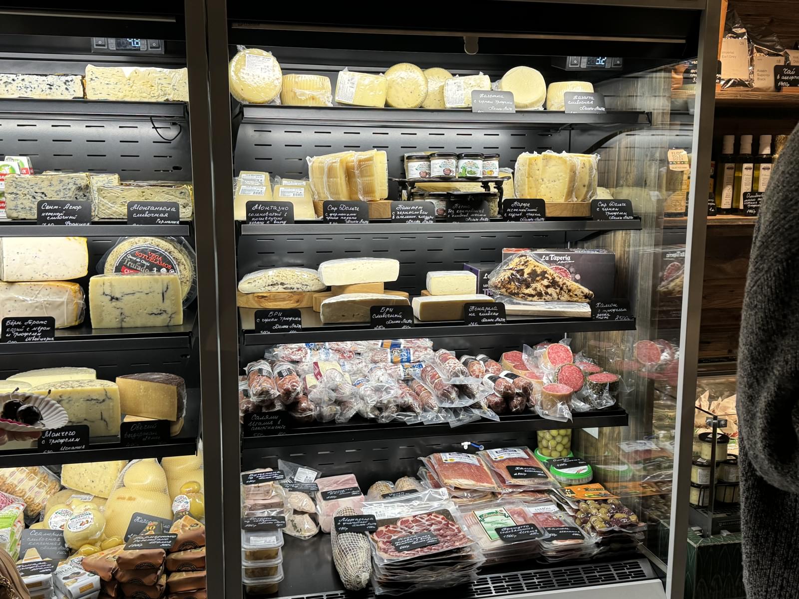 • Сыры и мясо: эту зону курирует сыроварня Dolce Latte, известная своими сырами и деликатесами. Вообще, сыр с трюфелем хорошо сметчился с вином, пришлось взять с собой пару упаковок на новогодний стол.