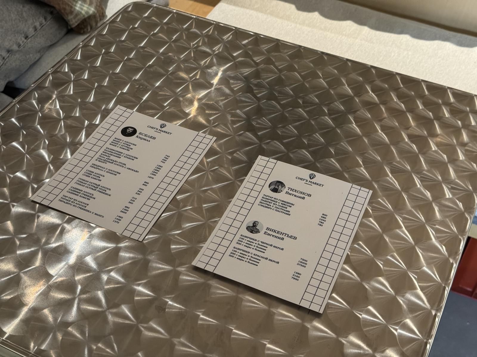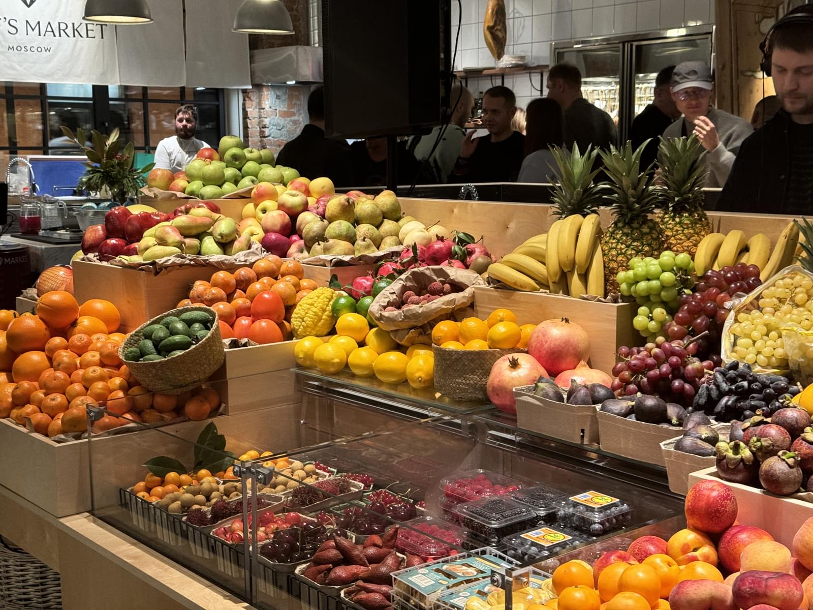 Главное пространство Greens разделено на две части. Первая — это Chef’s Market, зона, которая объединила трёх звёздных шефов: Кирилл Еселев, бренд-шеф ресторанов «Каспийка», ведущий кулинарных шоу и постоянный эксперт телепроектов. Его подход сочетает экспертизу в работе с морепродуктами и стремление к инновациям. Кирилл отвечает за RAW-бар с рыбой и морепродуктами, где подают свежайшие маки с лососем (740 ₽), сашими из гребешка (1 300 ₽) и тар-тар из лосося (1 460 ₽).