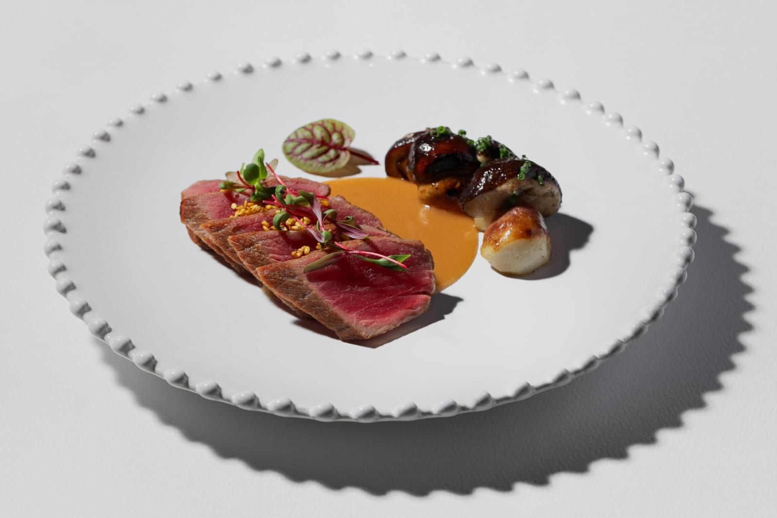Дегустационный сет: карпаччо из осьминога с фенхелем, гребешок с икрой и морковью, филе ягнёнка со сморчками, десерт «Исфахан». 5 900₽