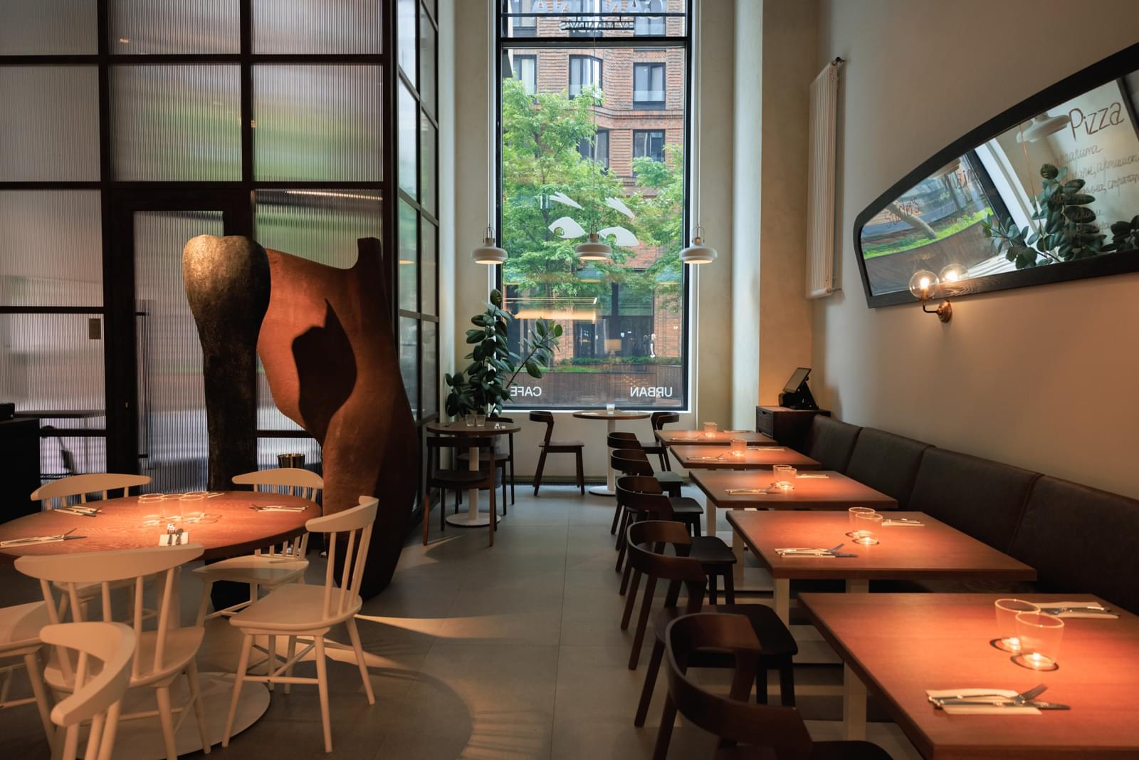 Интерьер оформили под стать тепло и минималистично, чтобы у жителей ЖК «Царской площади» не было и мысли о поездке в центр за вкусностями. О картинах на стенах, фантазийной инсталляции на входе и стройных, орехового цвета, стульях позаботилось бюро ANZA во главе с Анастасией Землянской (то же, что открывало Osteria by Mandy’s). Картины, кстати, легко можно включить в счет, приплюсовав их к пасте, и радостно уносить с собой домой (это на случай, если приглянется до нельзя!). Ещё одним «артом», пусть и не таким красочным, а скорее информативным, можно назвать меню, написанное на модном, большом зеркале. Совсем скоро на зеркале «пропишутся» ещё и завтраки, и приходить сюда можно будет с 8:00 за сырниками (650₽), френч тостами с рикоттой (650₽), сэндвичами (800₽) и шакшукой (800₽).
