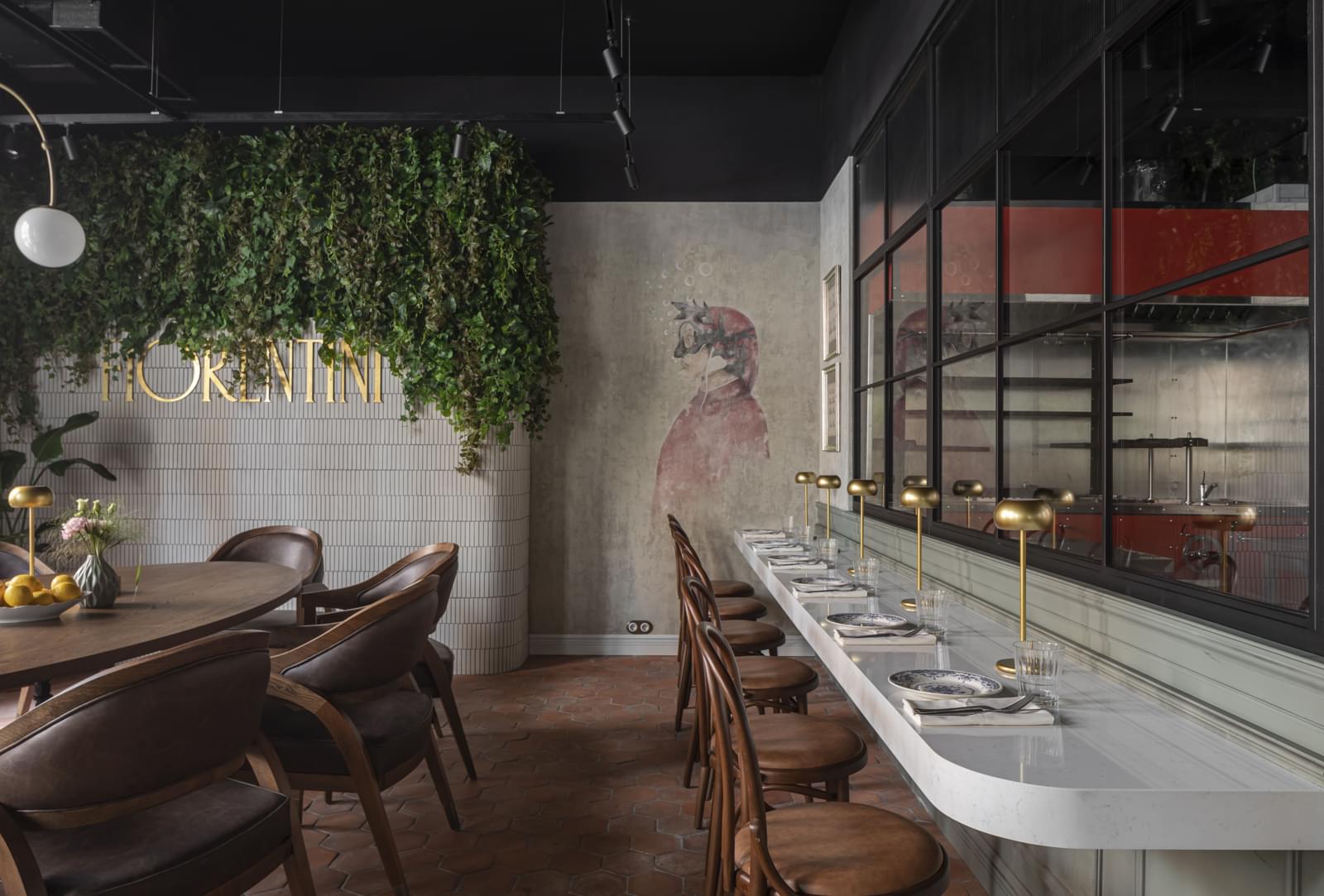 Food-cпойлеры здесь жирные и манящие, взять хотя бы аффогато с кофейным кремю или десерты в виде равиоли и Колизея, а интерьеры пропитаны текстурностью и аппетитностью: картины с артишоками и камамбером будоражат сознание гурманов.