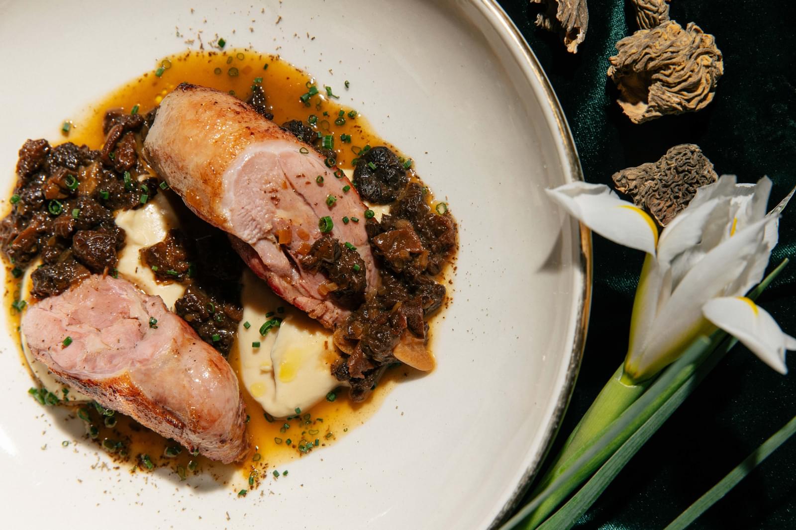Во французском баре Bijou шеф Сергей Воронцов приготовил для гостей сезонные обновления со сморчками — утку конфи с кремом из корня сельдерея с тимьяном и чесноком. Грибы для раскрытия вкуса обжаривают с коньяком и луком шалот. Тем, кто любит добротную выпечку на французский манер, шеф рекомендует попробовать пастуший пирог со сморчками, картофельным пюре, потрошками и ароматным сыром грюйер — звучит тепло и вкусно.