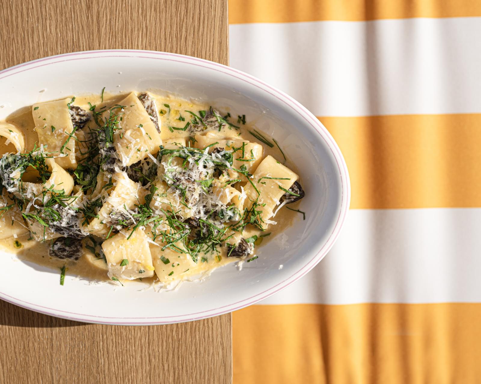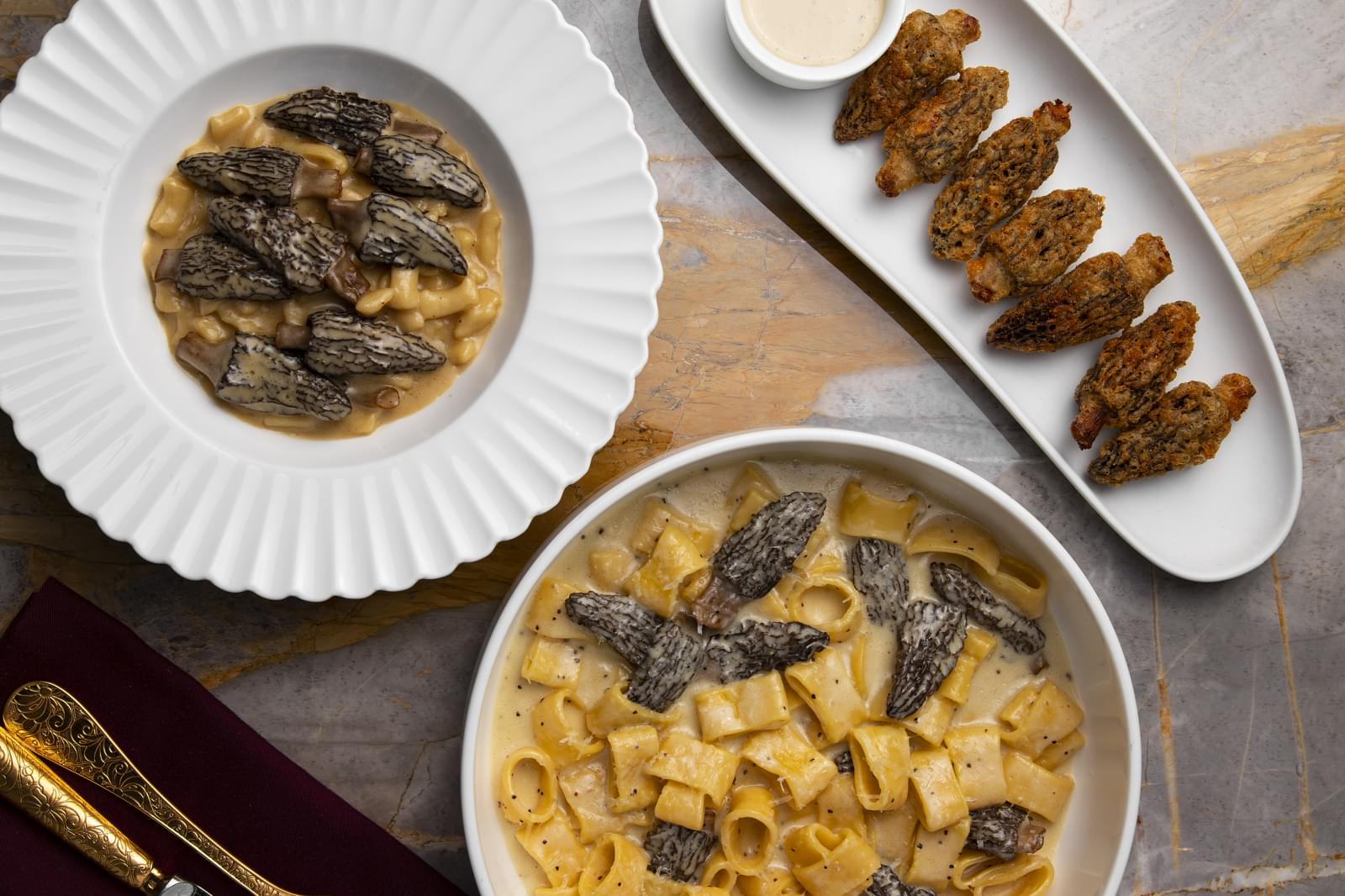 Шеф-повар Андрей Палесика создал три блюда из сморчков. Первое — это хрустящие сморчки, приготовленные в кляре, фаршированные сырным муссом из пармезана и креметты с грибным соусом. Также здесь присутствуют пикантные нотки чеснока, свежего укропа и специй барбекю. Второе блюдо — качо-э-пепе с обжаренными сморчками с легким дымчатым вкусом. Одну из солирующих ролей, наряду с грибами, здесь играет паста каламарата, окутанная ароматным соусом из грибного бульона, сливок и пармезана. Завершают трио сморчковых блюд нежные картофельные ньокки под грибным соусом с ореховой нотой. Кстати, за дополнительную плату шеф предлагает дополнить сморчками любое блюдо из основного меню.