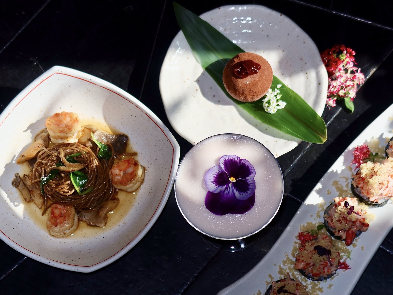 • соба с креветками и устричными грибами (1080), которую подают в формате «take away», надеясь, что в столицу все-таки проберется солнце и даст повод для обеда «на вынос»;