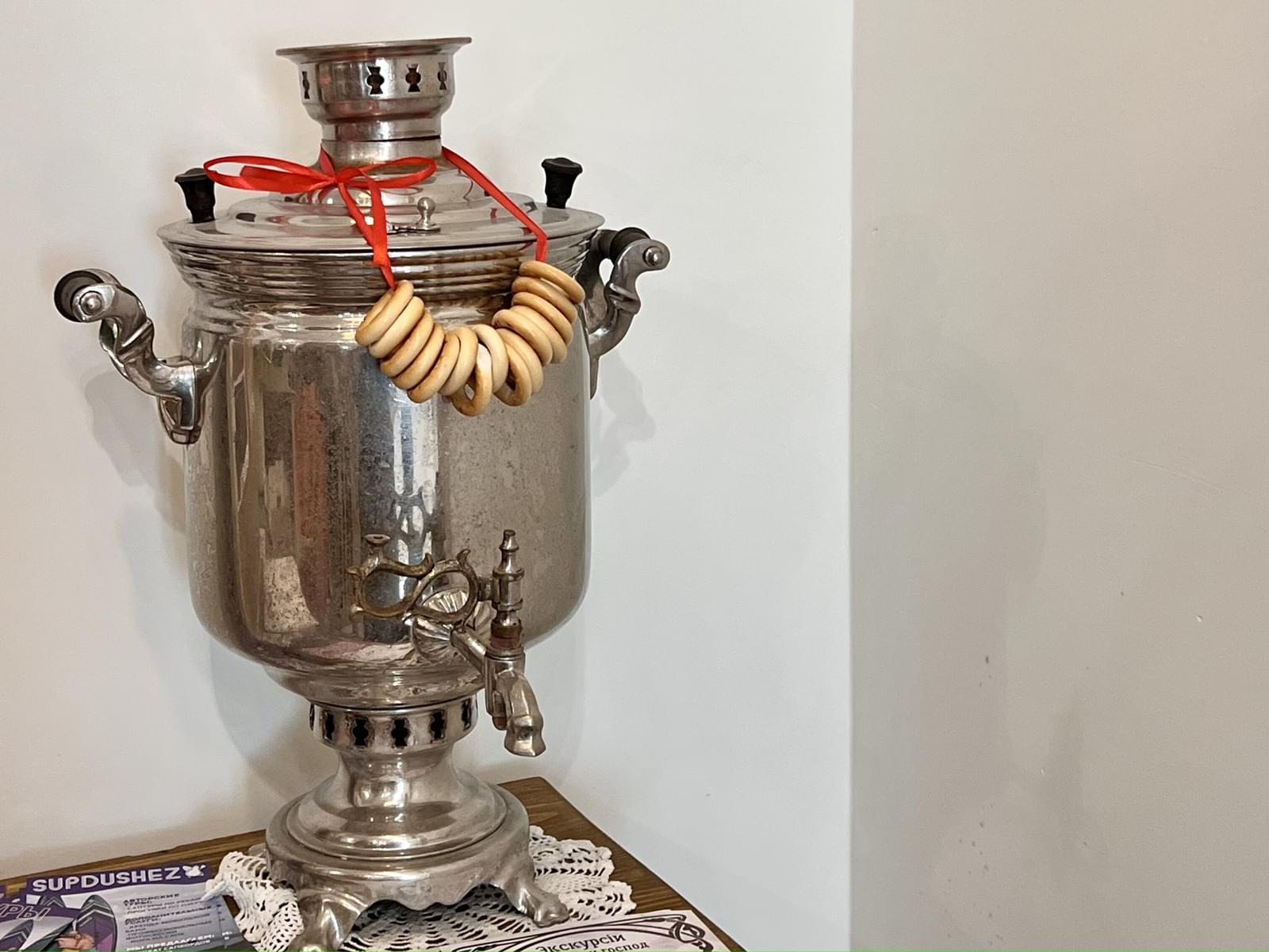 Двухэтажное светлое пространство с вырезными досками и пряниками всех размером проживает вот уже несколько лет рядом с Храмом Александра Невского на Ростовской улице, 3. Поднимаясь по деревянными лестницами можно ощутить русский дух и первым делом заметить старинный самовар, увешанный баранками.