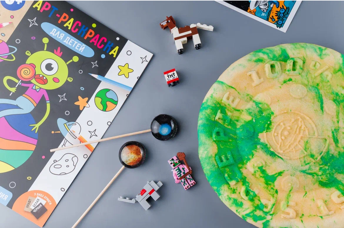 Для тех, кто собирается собрать в гостях друзей «с погремушками» космические пироги в Space Pie приготовили огромный бокс «Cosmos Party 8в1» (35000 руб.), состоящий из 5 пирогов-летающих тарелок, 10 пирогов-шаттлов, 10 десертов-капсул, 10 бутылочек сока, шариков, курьера-космонавта, комиксов и праздничных свечей. Заказать его можно через доставку, а когда к вам приедет курьер, он устроит космический мастер-класс для детей. Такими спецэффектами хоть поход на утренник заменяй.