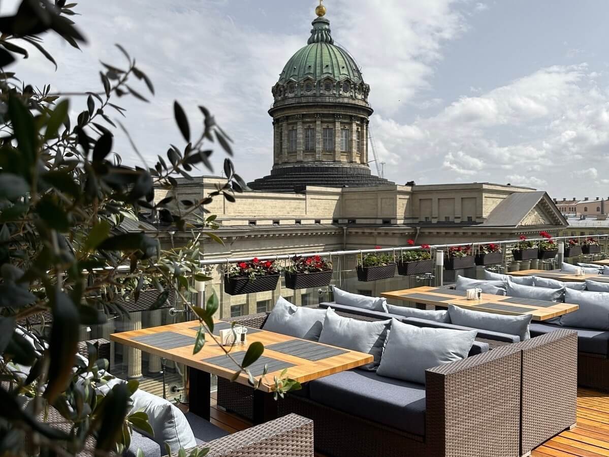 Если вы в Петербурге впервые — начните с Terrasa. Это не просто панорамный ресторан в двух шагах от Невского, это настоящее «знакомство» с городом. Вид на Казанский собор, шум центра и огромная веранда летом — всё здесь работает на первое впечатление. В меню — азиатская, европейская и русская классика в отличном исполнении, а ещё неожиданные находки – образцово-показательная утка по-пекински и фантастический «Наполеон».