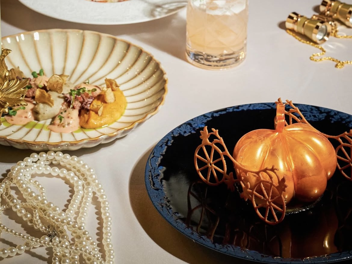 Попасть в этот ресторан всего за 3500₽ уже кажется какой-то «сказкой». В окружении мрамора, лепнины и самой роскошной люстры в городе в ресторане Турандот рассказывают «Золушку» и ставят на столы «Травиату» совместно с Геликон-опера. В сете «Золушка» предлагают разбить десерт в форме кружевной «хрустальной тыквы», в «Травиата» — подносят шкатулку, где вместо жемчугов прячется сладкий медальон с обликом главной героини. К таким сетам хочется подготовиться ответственно: надевать бархат и лучшие украшения, чтобы разгадать замысел «режиссера» на ваших тарелках с лоском и величием.