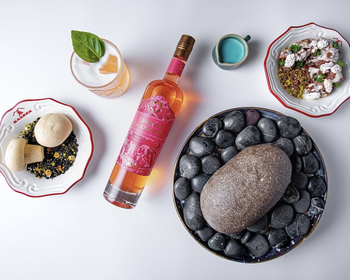Грузинский ресторан «Казбек» ничуть не уступает во вдохновении своим коллегам и, объединившись с Театром Вахтангова, представляет два сета. Сет «Обыкновенное чудо» вдохновлен пьесой Шварца о любви, преображающей мир. Пьеса, написанная для жены, нашла продолжение и в блюдах: реплика грибов с трюфельной пастой, дичь в глине и десерт «Горное озеро». Столь же гармоничным окажется и второй сет по лермонтовскому «Маскараду», где подают шар из сулугуни, треску с соусом шкмерули и «вишню в ликере».