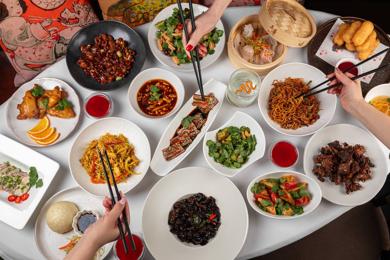 В меню вошли хрустящие битые огурцы с кинзой и кешью, салат из соевой спаржи, черных грибов и битых огурцов с арахисом, ароматные баклажаны с помидорами, пикантные черные древесные грибы, утиная грудка Цао Га в ореховом соусе, прессованные свиные уши в соевом маринаде, кисло-острый суп с креветками и курицей, суп с лапшой и утиными семечками, ассорти из четырёх видов димсамов (с овощами, креветками, крабом и говядиной), баоцзы со свининой, яичная лапша с курицей, стеклянная лапша по-сингапурски, цыплёнок Гунг-Бао с арахисом, свинина в апельсиновом соусе и жареное молоко — классический китайский десерт с нежной текстурой и золотистой корочкой.