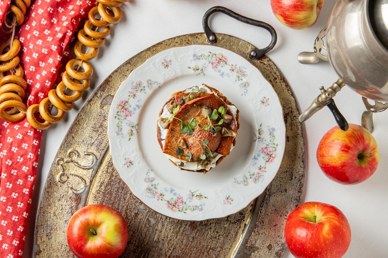 В меню Москвы вошли главные, и, пожалуй, домашние блюда москвичей: «Бутерброд с жареной колбасой» (650 руб.) с той самой Докторской комбината им. Микояна, и «Бутерброд с мясной котлетой и соусом из маринованных огурцов» (850 руб.) — первую советскую вариацию «гамбургера», в версии шефа Волконенкова: с котлетой из фазана, огуречным релишем на булочке бриошь.