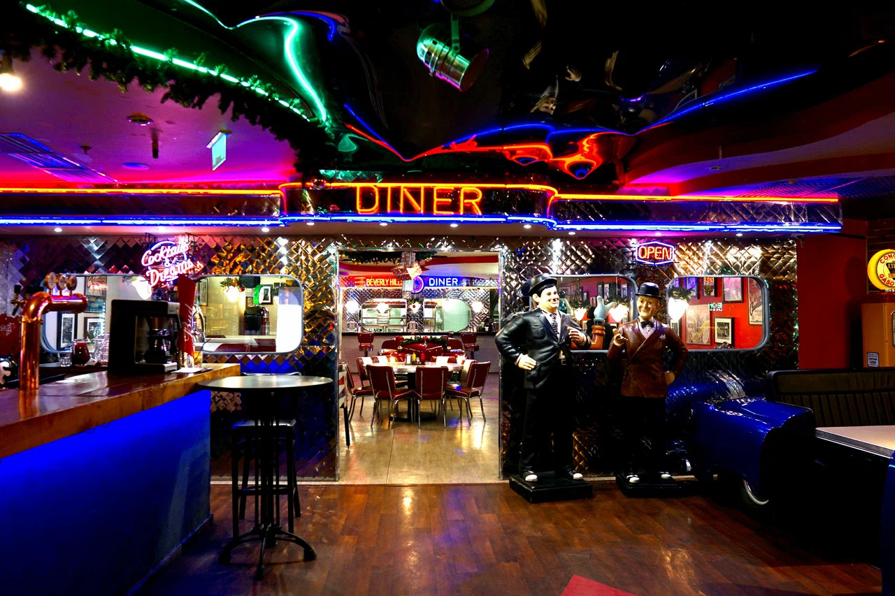 Яркое круглосуточное кафе в стиле американских дайнеров на Лубянке.