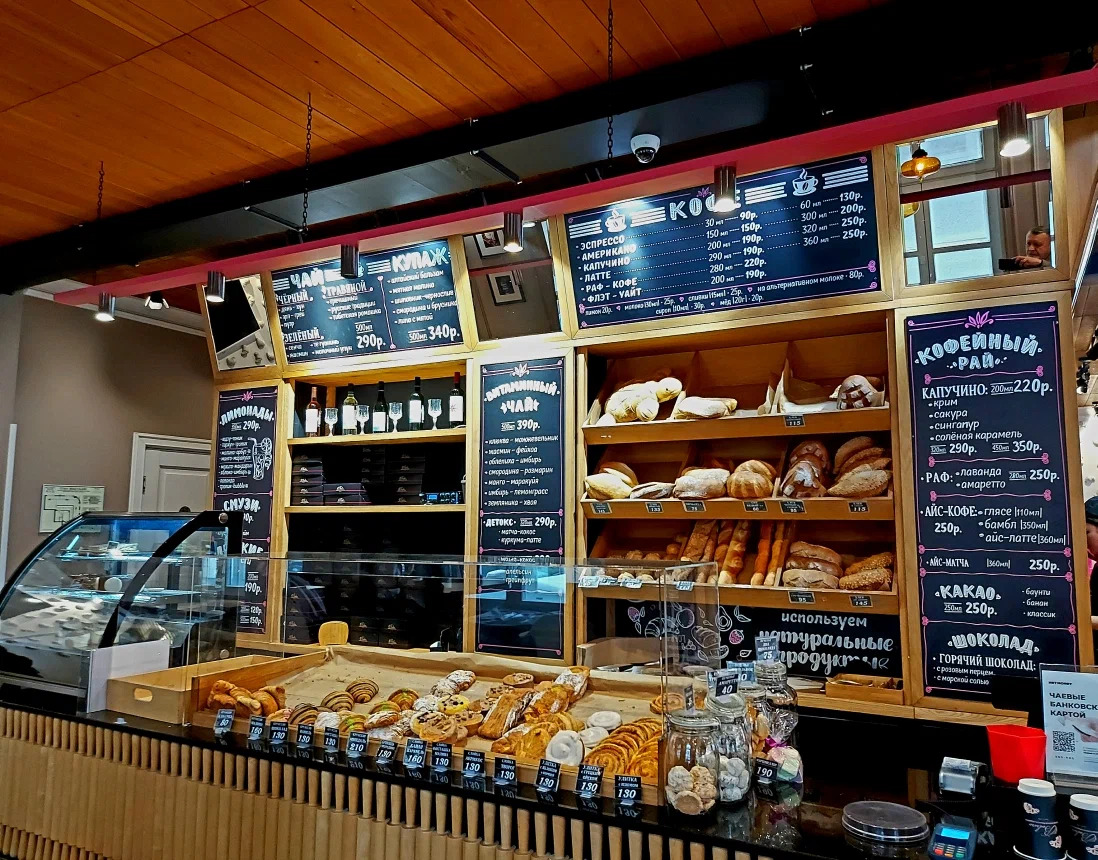 Сетевая кондитерская Франсуа Бодреро на Сретенке. В меню представлены бриоши, круассаны, улитки, пироги, сэндвичи, слойки, эклеры и макарони. Кроме того, есть пироги с сытными начинками и сэндвичи.