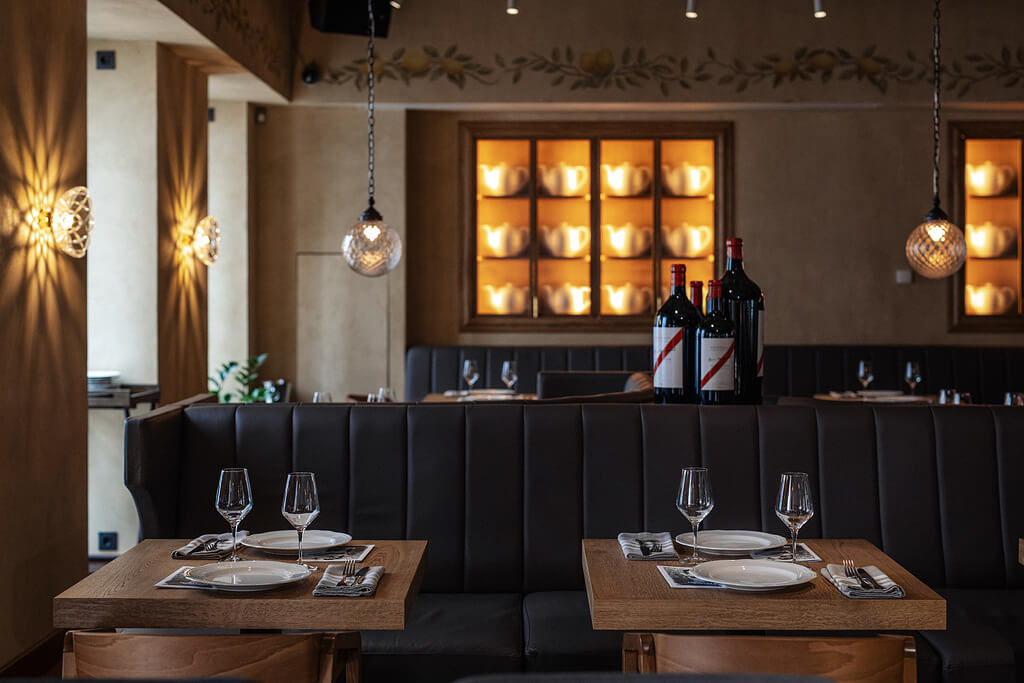 Итальянский ресторан Арама Мнацаканова на Малой Бронной улице. Интерьер выполнен в элегантном стиле с преобладанием дерева, парадными люстрами и уютным освещением. В меню можно найти безглютеновую пиццу с необычными начинками, такими как страчателла с анчоусами, мортаделла с фисташками и острая калабрийская салями ндуя. Также предлагаются традиционные итальянские блюда, например, пармиджан и осьминог по-сицилийски.