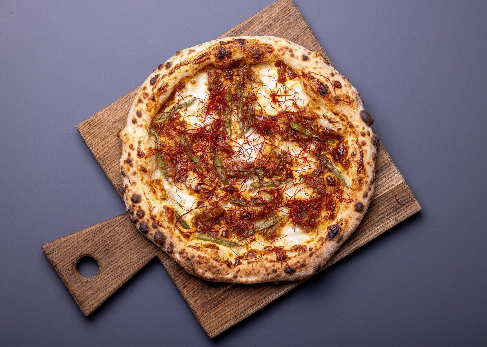 Эльдар и Антон, открывшие в Лиссабоне израильское бистро Zula, придумали пиццу, максимально отражающую концепцию нового проекта. В состав пиццы входят: муххамара, бедро цыплёнка гриль в специях заатар, израильский салат и соус амба (650₽).