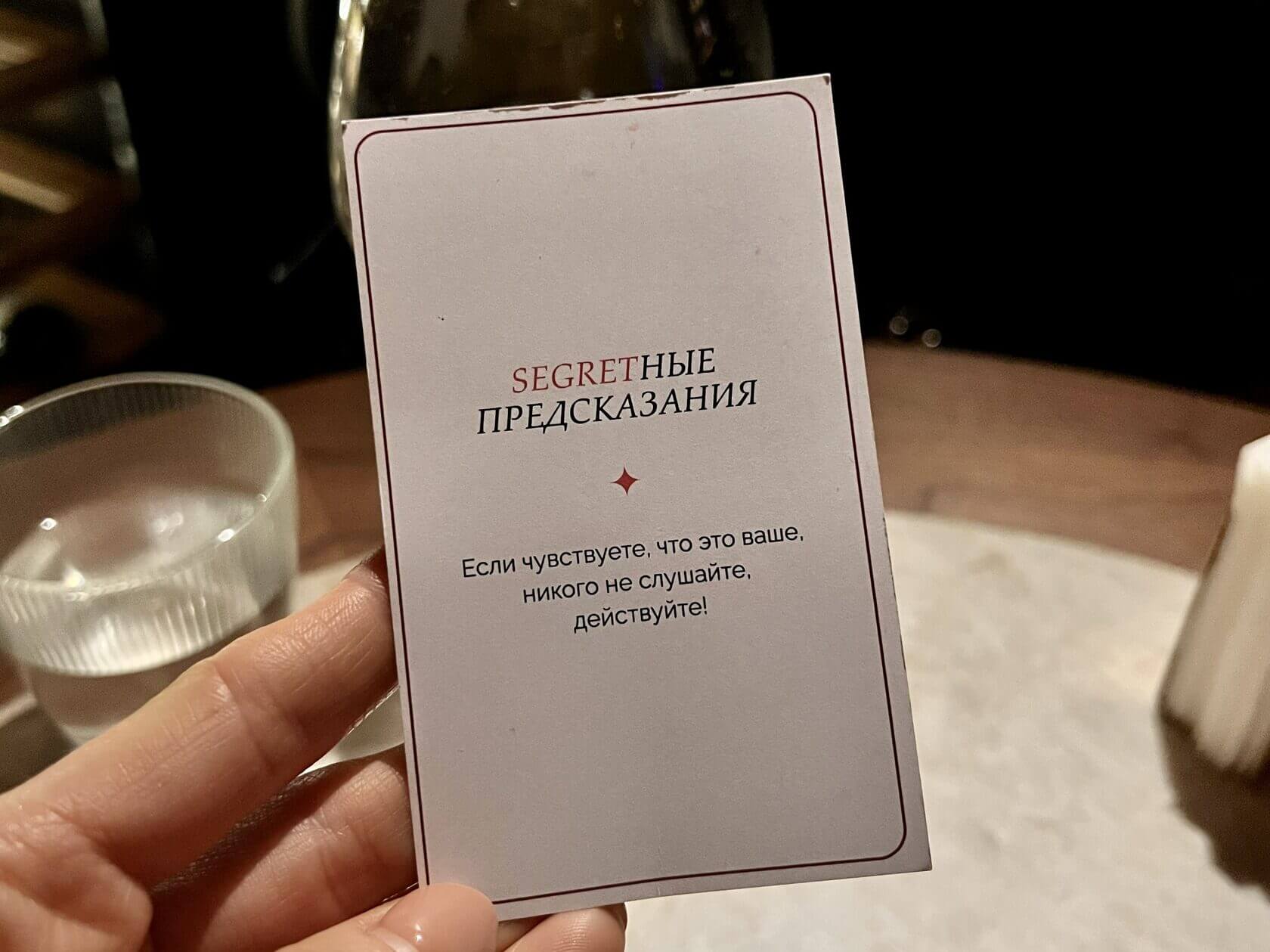 Уходя, испытайте судьбу и получите «segretnoe» предсказание, попросив бармена принести вам колоду карт с напутствиями.