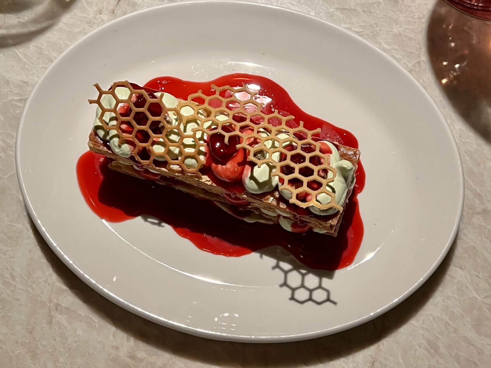 Кондитер Вера Полищук отвечает за сладкую жизнь в Unica. Фисташковый мильфей с вишней безупречен и может быть заказан ради нежного крема и яркого оттенка ягод. Недавно появились ещё и шоколадные конфеты с различными начинками. Их можно заказать пейрингом к Negroni Collection.