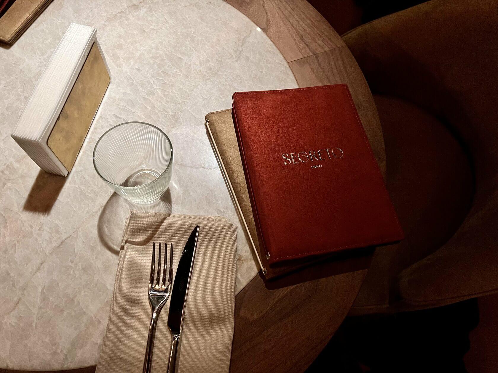 Отмотаем время на сто лет назад: в эпоху золотых и ревущих 20-х, о яркости которых писал Фицджеральд. Представим эклектику светского салона, мягкие портьеры в окружении бархатной мебели и приглушённый свет. Это и будет Segreto. Здесь, за зеркальной дверью, элегантно и лаконично, а каждой детале уделено отдельное внимание. На стенах мураль по мотивам четырёх картин Анри Руссо, а на латунном подносе 60-х годов подают Mary Mango.