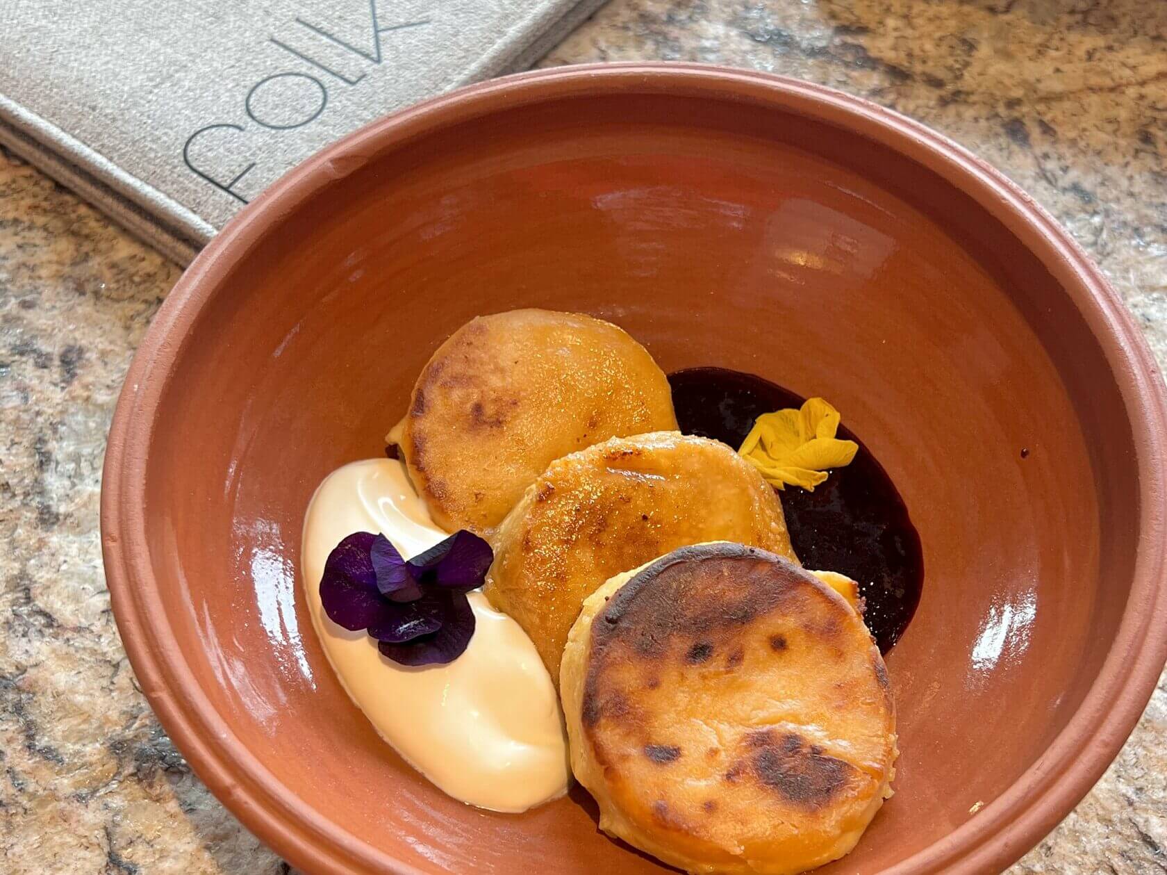 Максимальный балл, если опираться на подслушанные и незамедлительные отзывы гостей, получили сырники из иримшика (590р). Иримшик — это локальный творог, по вкусу напоминающий сгущенку. Добавьте сюда мягкий йогурт, варенье из смородины и попробуйте представить, как теперь жить без такого десерта.