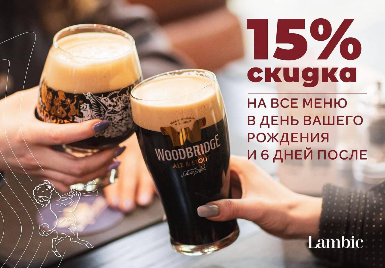 По будним дням с 12 до 16 на все меню ресторана действует скидка 15%.