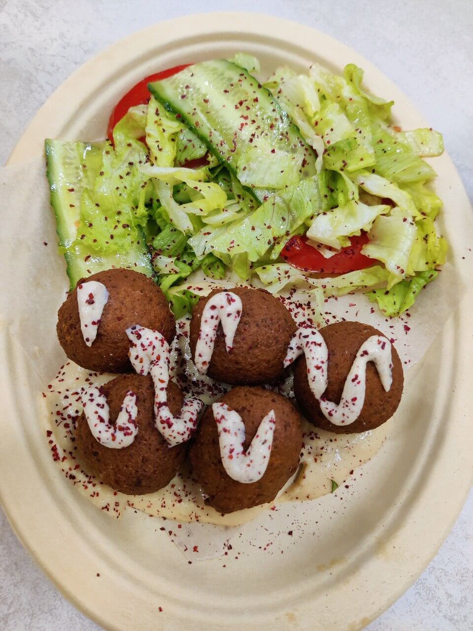 Хрустящий фалафель с овощами, лимонным маслом и сумахом (390₽)