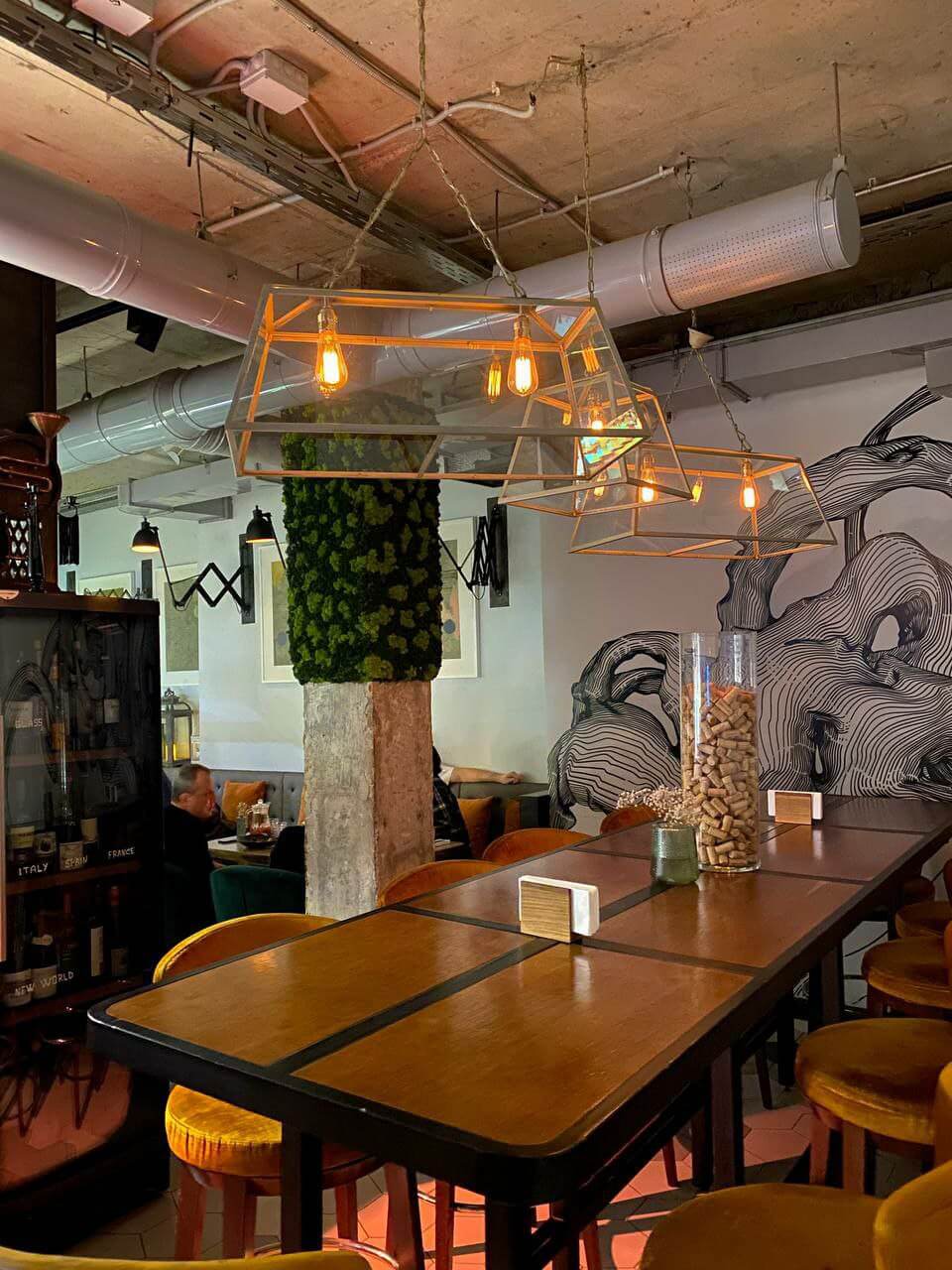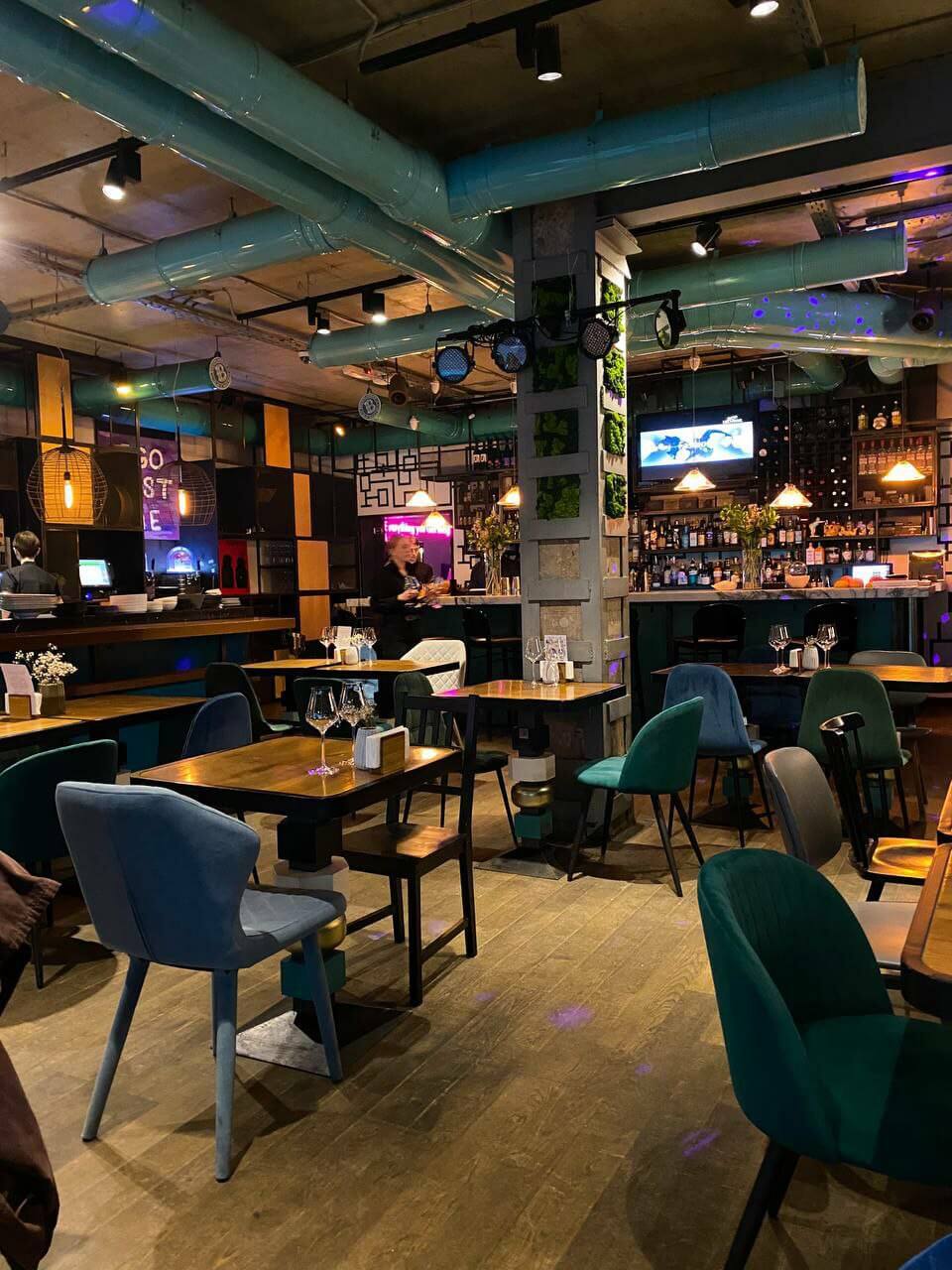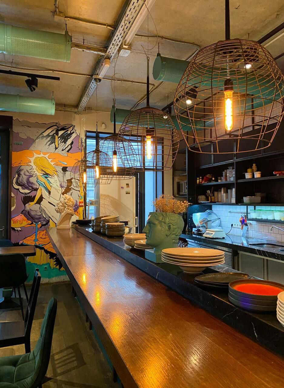 Район Хамовники по праву считается одним из самых популярных направлений для неспешных городских прогулок. Чуть ли не каждое здание на Остоженке и Пречистенке имеет историческую или архитектурную ценность. Про новую Айну мы вам утром рассказали, настал черед познакомить с 15 Kitchen & Bar, небольшим заведением «для своих» (рекомендовано Michelin 2022), в котором совсем недавно почти полностью обновили меню.Дизайн совсем незатейливый, поэтому перейдем сразу к еде. У кухни нет четкой направленности, лаконичное меню пестрит знакомыми названиями с обещанием авторской подачи, цены тоже кажутся «средними по больнице».По традиции, первыми были опробованы закуски. В тар-таре из говяжьего костреца с картофелем пай (580₽) понравилось свежее, нежное мясо и хороший размер порции (как окажется впоследствии, здесь это больше редкость). Севиче из гребешка (890₽) в сочетании с «модным» кумкватом хоть и придаёт летнее настроение, но, увы, выразительным вкусом не порадовал, да и порция мизерная.У морковно-имбирного супа (390₽) нежная консистенция, но терпкий вкус имбиря явно перекрыл все остальные составляющие. Палтус с соусом Том ям (1030₽) оказался настолько маленьким, что нам удалось ощутить только соус и вкус салата чука. Порадовал вкусовым балансом (но точно не ценой) однозначный бестселлер старого меню, Бифштекс с картофельным пюре с васаби и соусом демиглас (1350₽). Сочное мясо, пюре с непередаваемой легкой остринкой, приятная подача.Если к меню достаточно много вопросов, то вот за авторскими коктейлями сюда точно стоит зайти! Нулевой меридиан и Гугол (690₽) удивили правильным градусом и превосходным сочетанием всех заявленных ингредиентов.В будни (с 16.00 до 18.00) приятным дополнением к меню является скидка 20% на все блюда, а по понедельникам можно стать свидетелем представления «Безумные соседи».