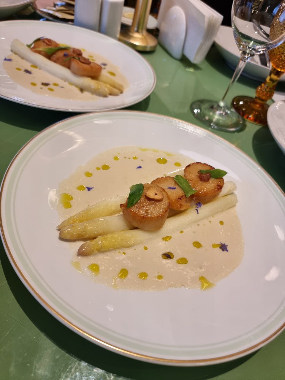 Новые позиции из раздела горячих блюд стали самым приятным открытием. Можем со всей ответственностью рекомендовать гребешок сен-жак с велюте из белой спаржи (1600₽). Моллюск и спаржа хорошо приготовлены и приправлены отличным соусом. Изюминку блюду добавил обожженный чеснок.