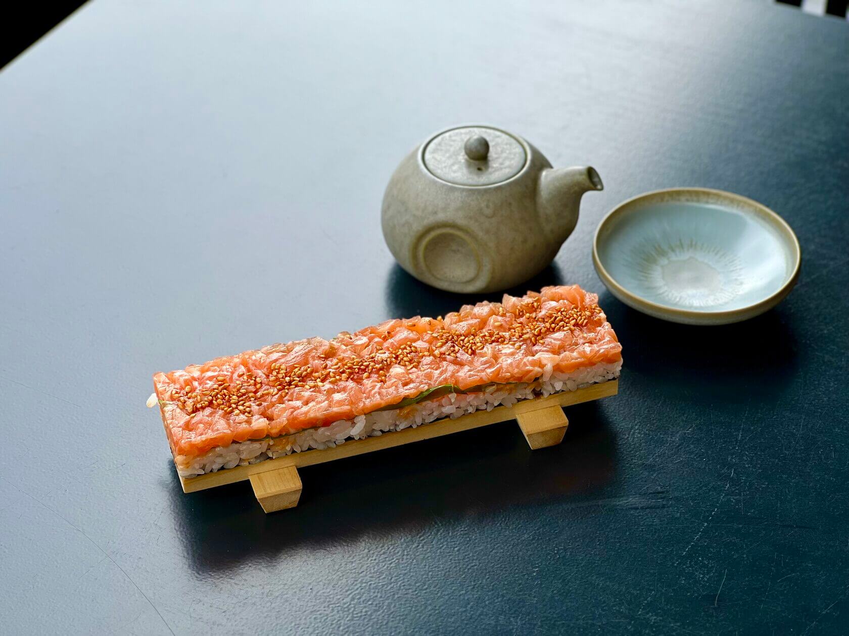 В ошидзуси с лососем прекрасно всё: рис прекрасно сварен, рыба наисвежайщая и с чистым вкусом. Хороший и почти классический ролл, но в интересном форм-факторе.