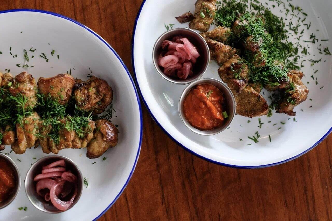 О тех, кто в эти майские остаётся без вылазки на природу, позаботились ребята из Ø36 Kebab: пожарили два вида шашлыка и даже собрали шашлычную вариацию кебаба на тарелке.