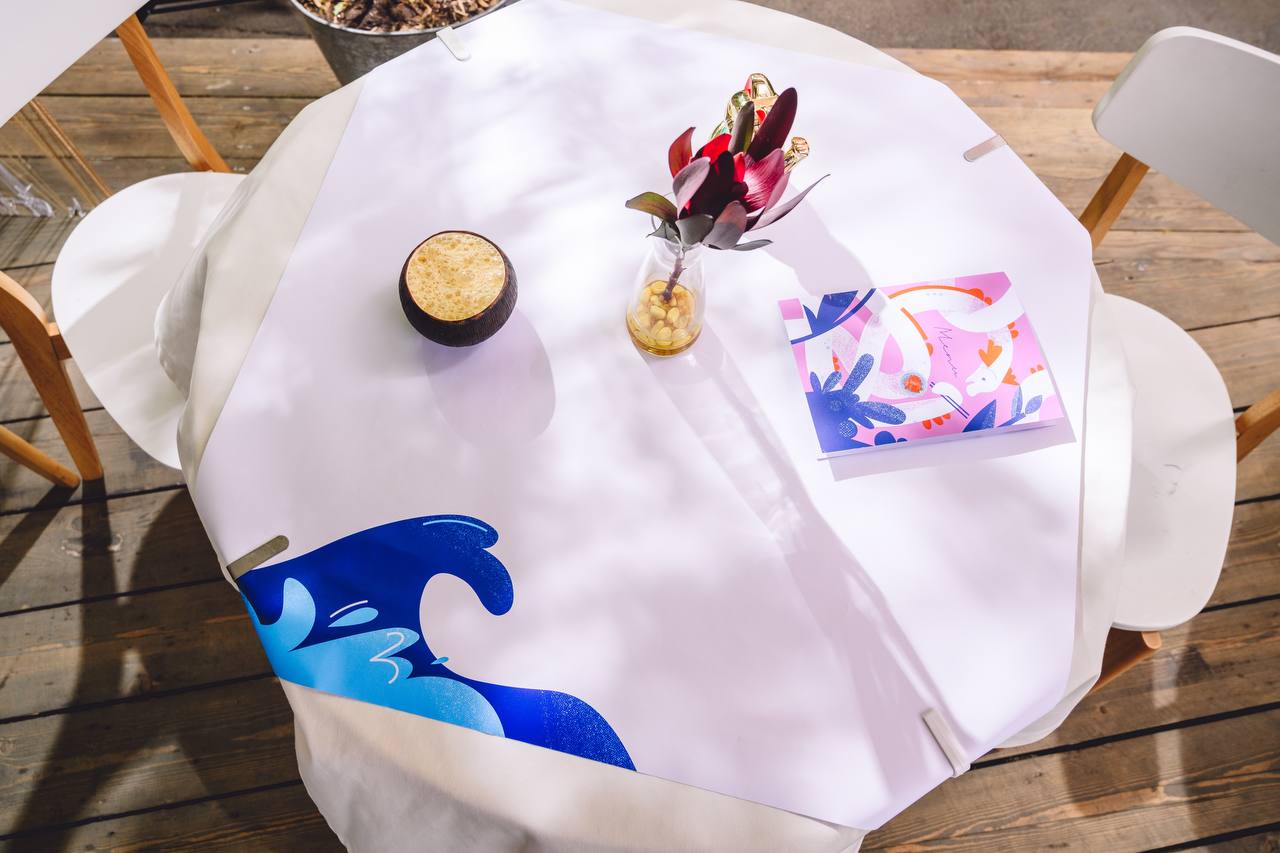 К запуску нового меню в группе ресторанов Владимира Перельмана подходят с креативом. В рамках коллаборации с HSE Art Gallery, начинающая художница, студентка Школы Дизайна Высшей Школы Экономики, Полина Фролова, в честь Days of Asia, разработала дизайн для меню и красочные принты для любимой многими гостями просторной веранды ресторана. А еще создала работу по мотивам тайской легенды об угре-альбиносе.