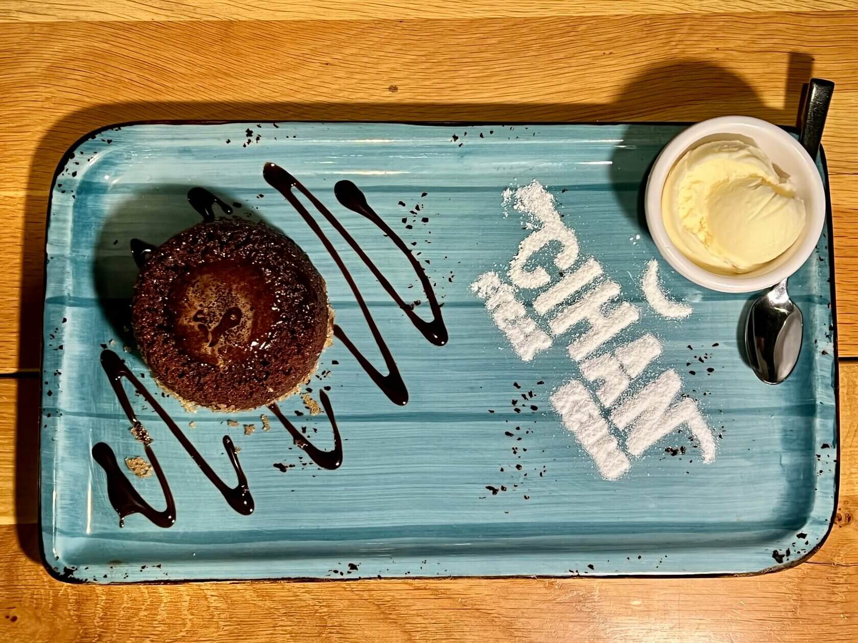 С шариком мороженого подают и шоколадный суфле (720₽) — нежный, тающий, отличный вариант для любителей шоколада.