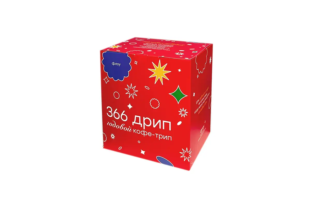 Найден идеальный подарок для всех, кто предпочитает дрип-пакеты любым другим способам заваривания! Коробка с 366 дрипами (следующий год — високосный) от «Флоу». В ней три вида дрипов: Кения Муруе, Колумбия Ла Виргиния и Индонезия Фринса Эдун.