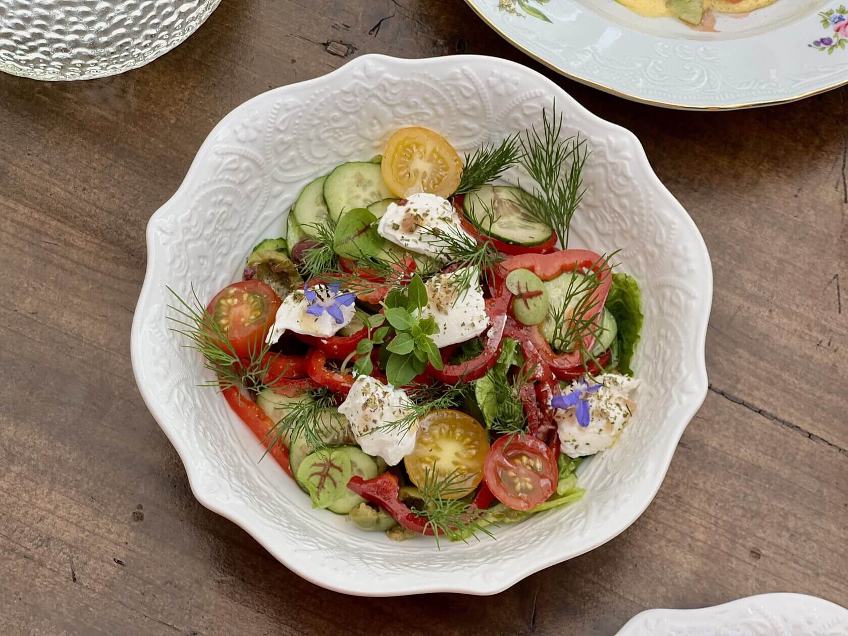 О том, что здесь брать первым, спорить не придется: это точно будет дачный салат (790₽). Вышел он удачным: помидоры без поролона, лёгкая сочная заправка, точечно расставленная зелень и нежные вкрапления сыра фета. Вкус «грядок» (тем, кто проводил лето в деревне у бабушки понятно, о чем речь) сохраняется благодаря огурцам, с которых не сбрили кожуру, за что и хочется сказать спасибо. Разве не так на любой даче поступают с салатом?