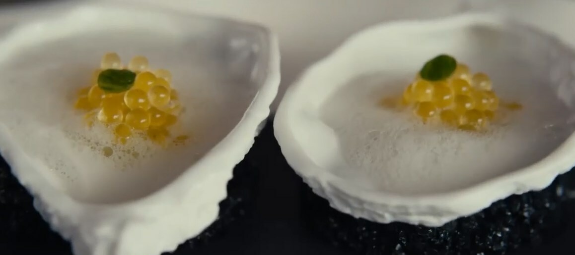Медленно развивая повествование, создатели фильма пытаются через призму героев показать свое отношение к этим «псевдо-гедонистам», которые готовы тратить огромные деньги на еду, которую они даже не в состоянии толком оценить. Из всех персонажей мне особенно понравилась пародия на ресторанного критика, которая на протяжении всего ужина не переставала использовать никому неизвестные термины для оценки блюд (невольно вспоминается мультик «Рататуй»). Всем действом дирижирует загадочный шеф-повар психопат (в эту роль отлично вжился Рейф Файнс), которому беспрекословно подчиняется вся команда, а потом уже и все гости.