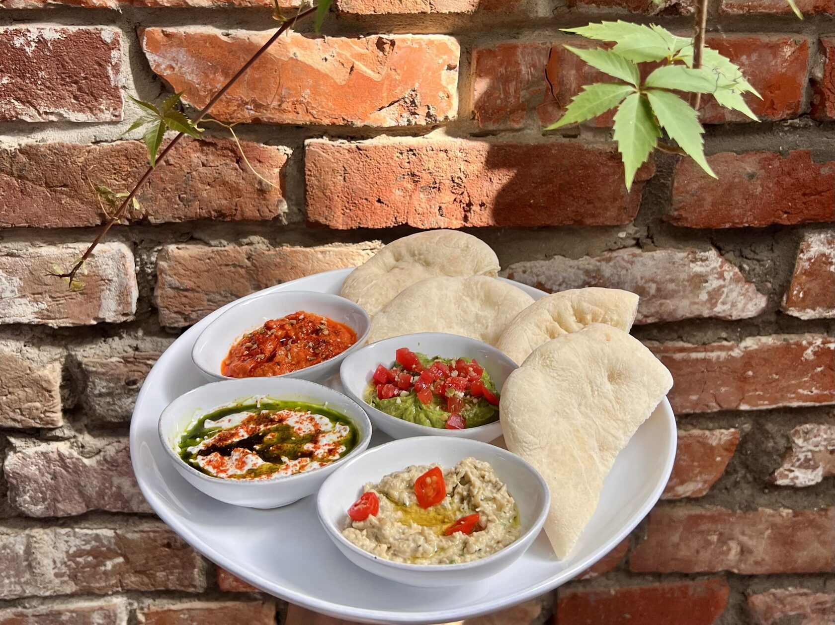 В остальном, это понятная еда на каждый день с выдернутыми мотивами из разных частей света. За Восток отвечают дипы с питой (1200₽), за Средиземноморье — сладкие оливки в зелёном салате (650₽), сибас по-сицилийски (1600₽) и отлично приготовленный кальмар с соусом чимичури (850₽). Самым цепляющим оказывается мотив французский, а именно, утиная грудка с кремом из копченого томата (1400₽).