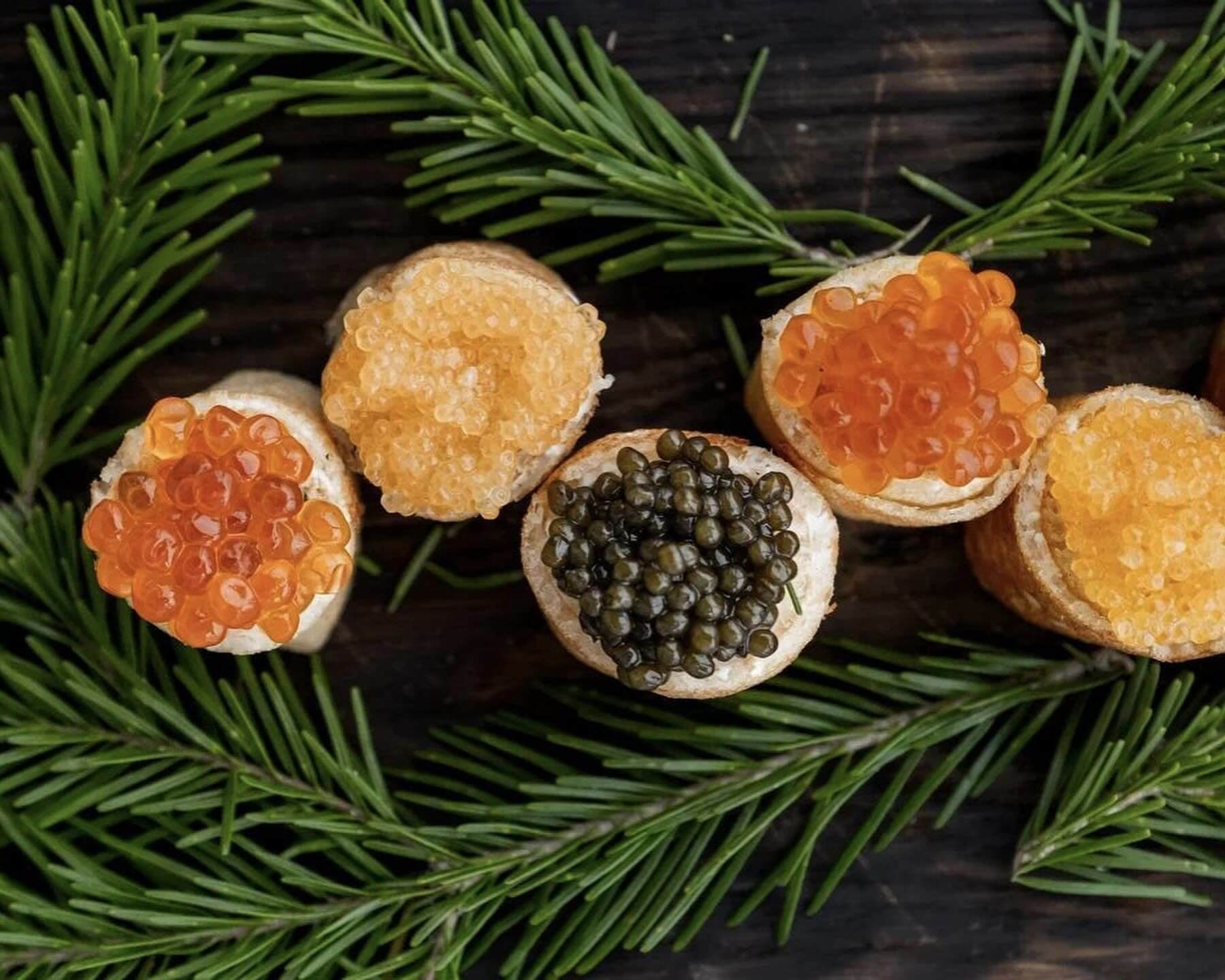 блины с икрой, сливочным сыром и свежим огурцом из Ruski. Фото взято из социальных сетей ресторана.