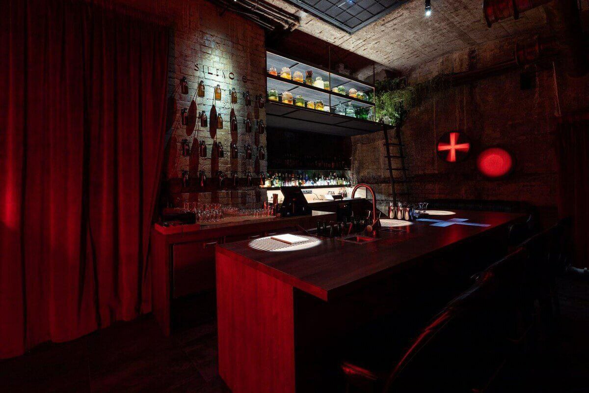 Полноценная абсентерия с дизайном в духе артхауса Дэвида Линча. Пить ли абсент в чистом виде или брать коктейли с его участием — решать вам. В «Silencio», вопреки названию, тишина не царит, а иногда бывает даже очень шумно.