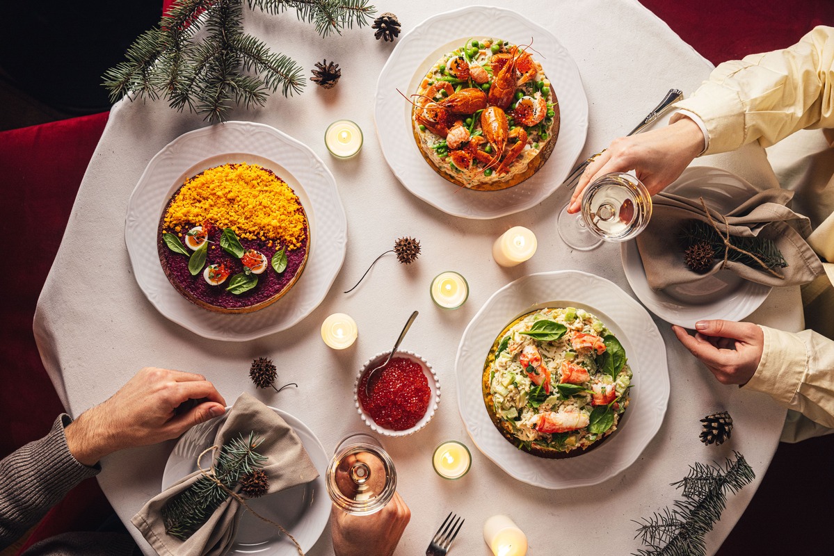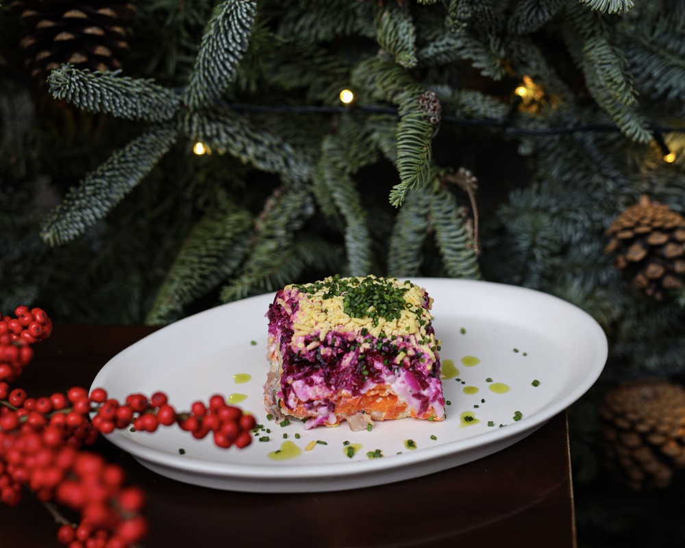 Команда ресторанов «Рыба Моя» знает, как сделать ваш новогодний стол роскошным и незабываемым. В меню — салаты и закуски для любой компании. Сельдь под шубой, оливье с креветками, рулетики из форели с крабом и даже мимоза с подкопченной форелью — всё приготовлено с вниманием к деталям.