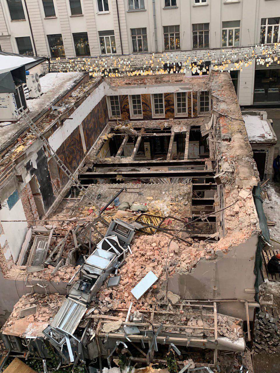 В Столешниковом переулке сносят Denis Simachev Shop&Bar, закрывшийся еще в 2019 году.