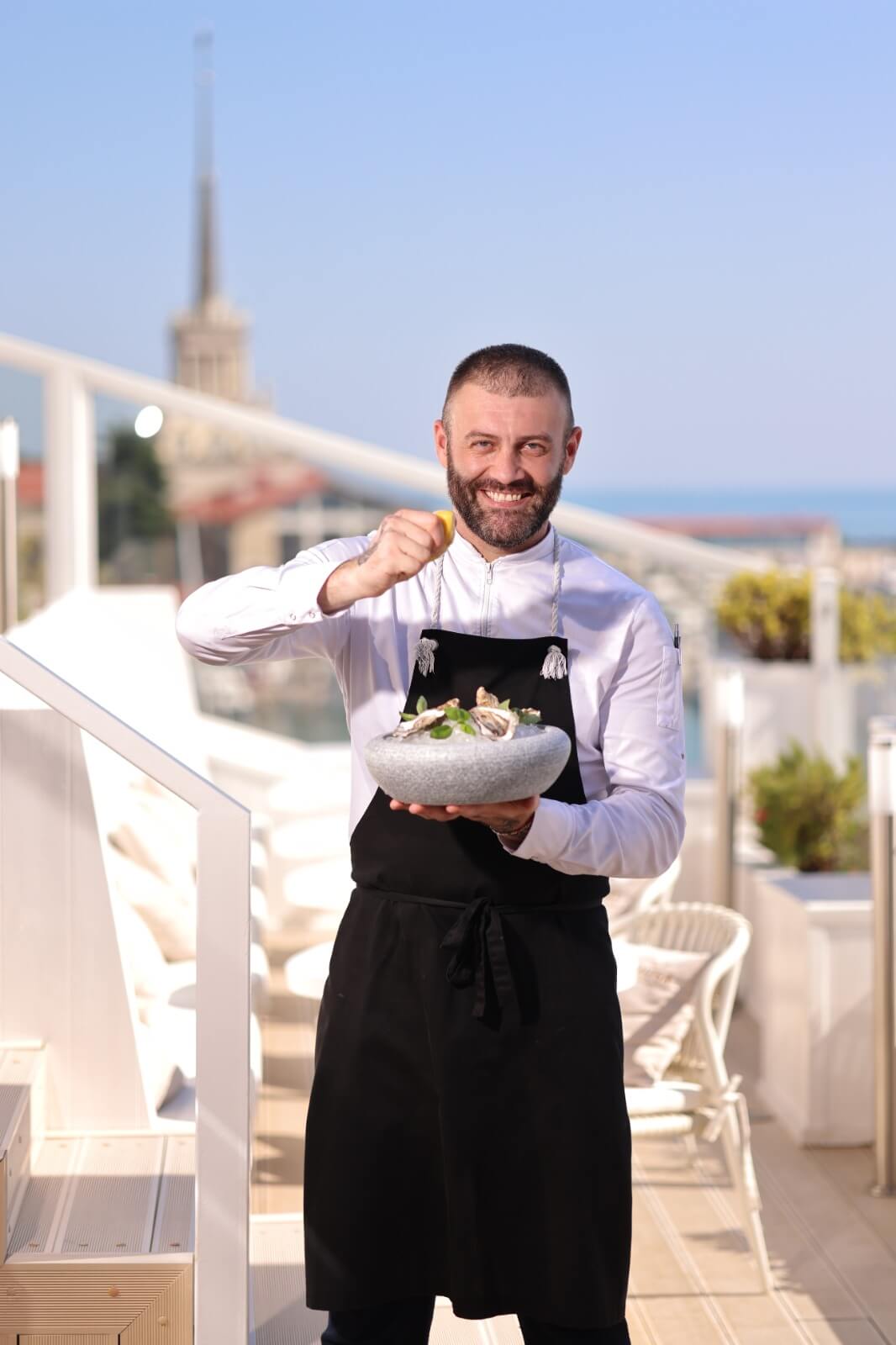 10 августа ужин «Южане» в The Greeks на этот раз представит шеф-повар ресторанного комплекса D.O.M. — Ашер Комаев. Авторские рецепты, средиземноморская кухня, обретающая знакомые черты в кавказских продуктах: салат с барабулей и луфарем, тартар из говядины с красной и щучьей икрой, черноморские мидии в мятном соусе и другое.
