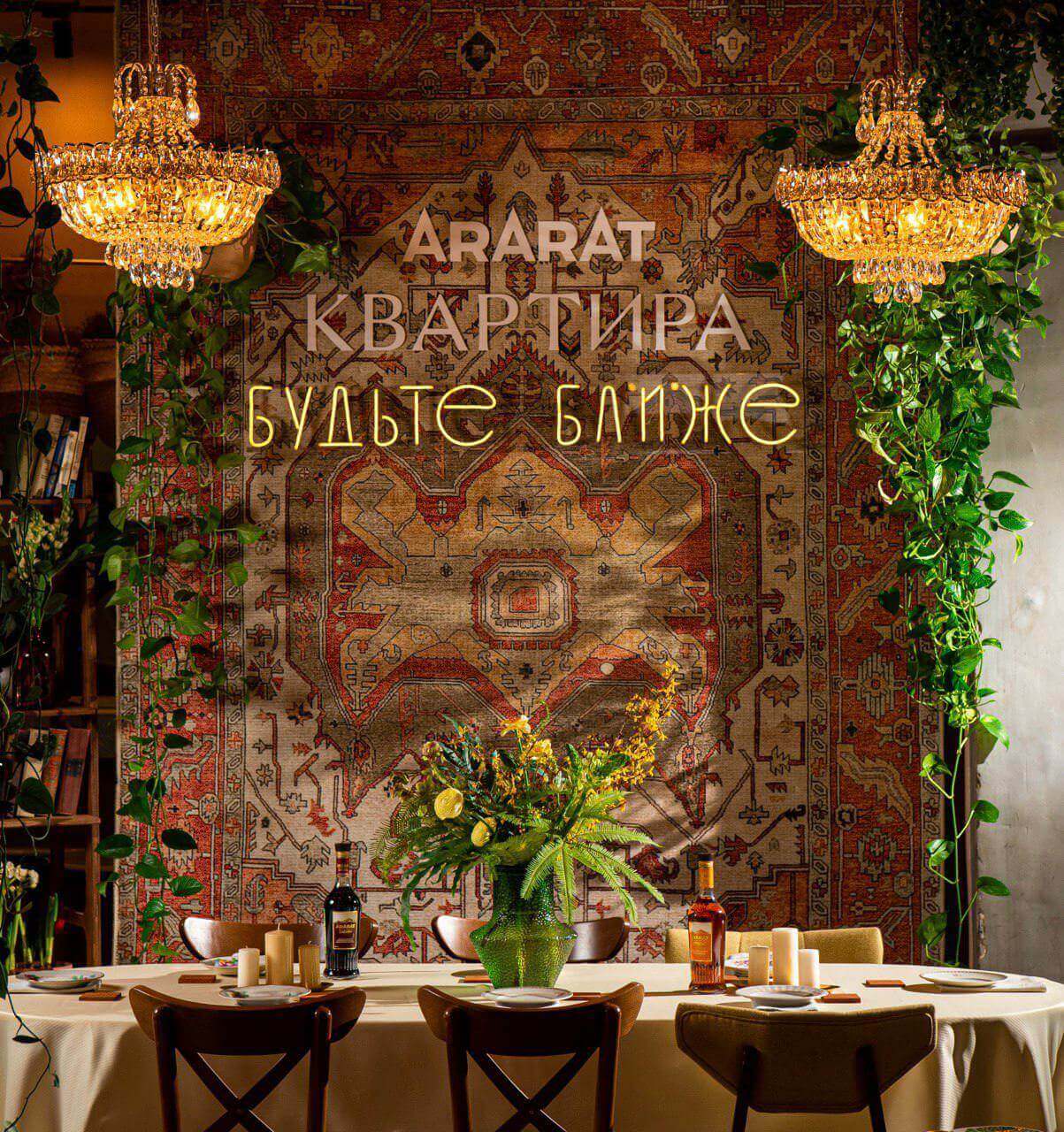За гастрономическую составляющую отвечает известный бренд ARARAT. Поэтому коктейльная карта вдохновлена армянским коньяком, а блюда перенесут в весеннюю Армению. Хитом меню признан гуляш по рецепту бабушки Шушан.