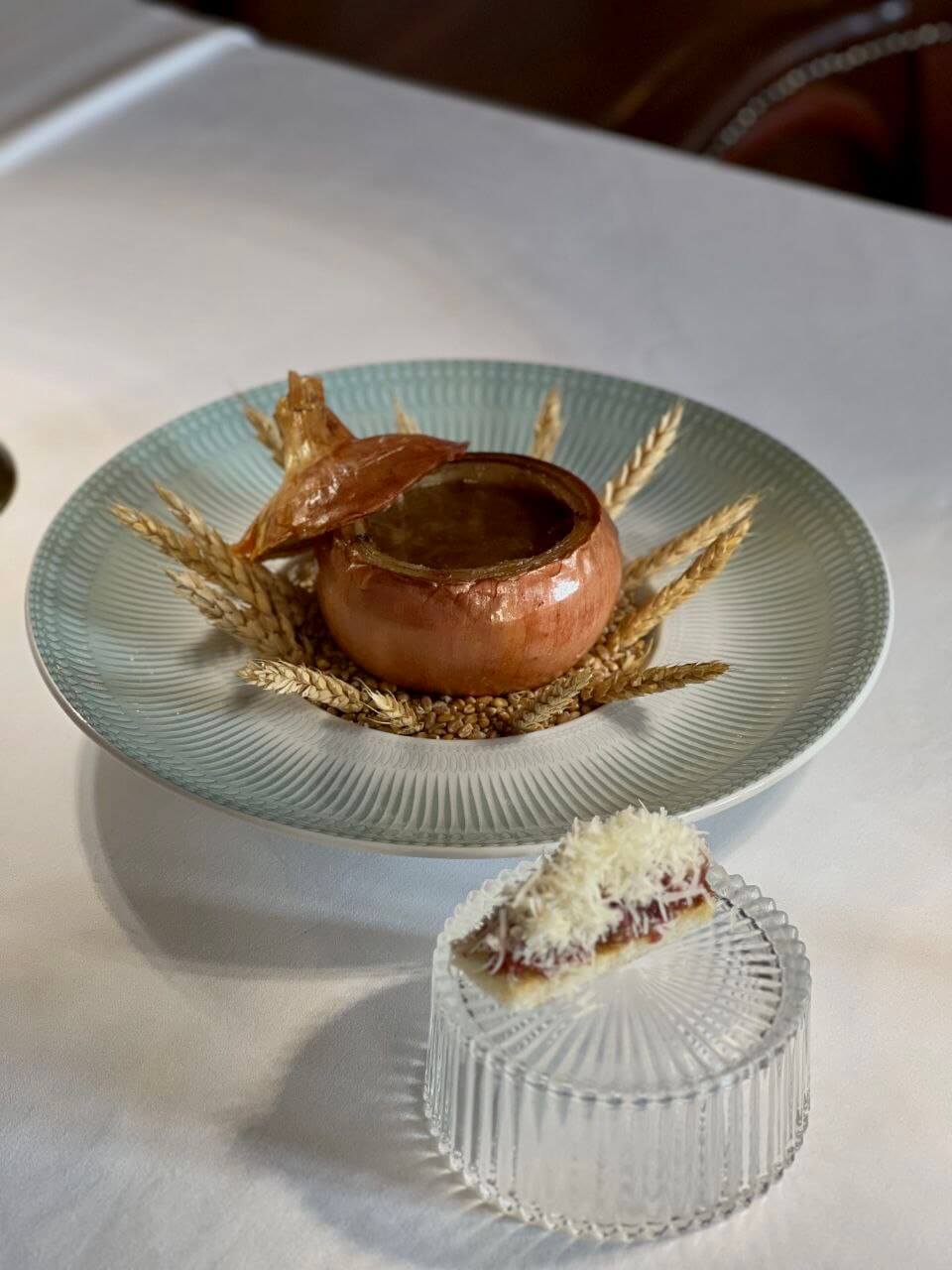 Пока в «настоящем» Париже бушуют страсти и горят баррикады, мы, как и обещали, отправились проверить, как обстоят дела в новом гранд-кафе Шануар, свежим пополнением гастрономической империи Деллоса. И был приятно удивлен.Интерьер получился сдержанным, элегантным, с легким парижским шиком. Белоснежные скатерти на столах, живые цветы, галантные официанты — все располагает к приятной и неспешной трапезе.В обеденное время в большом зале было пустынно, атмосфера больше располагает к вечерним застольям. Меню весьма лаконичное, помимо французской классики, есть раздел с пастой (куда же без нее?) и пельменями. Знакомство начали с традиционного холодного пирога пате ан крут (есть мясная (950₽) и овощная (690₽) версии). Блюдо многогранное по вкусу и колоритное внешне — начинка создает своеобразный узор. Любителям морепродуктов из закусок придутся по вкусу голубцы из репы с крабом (1390₽). Нежное и деликатное сочетание с превосходным соусом, комплементарный хлеб поможет вам не оставить ни капли на тарелке.Как не попробовать традиционный луковый специалитет? Подача максимально инстаграмная — наваристый бульон с добавлением красного вина в луковице (790₽). Интепретация Шануара получилась очень «сырной».Из горячих блюд советуем попробовать сибаса с луком конфи (1290₽), никаких претензий, рыба приготовлена «на пятерку». Из мясных блюд нельзя пропустить кок-о-ван (1390₽). Солидная порция петушка, тушеного с большим количество красного вина и овощами. Вкус необыкновенно сочный и пряный. А вот утка конфи с чечевицей (1190₽) была явно пересолена.Уйти без десерта не получилось. Тарт-татен из айвы (590₽) сервируется с необычным мороженым и капелькой эвкалиптового масла. Если вы любитель крем-брюле (690₽), здешний не оставит вас равнодушным. Ну и французская классика — Пари-Брест (690₽) — также обязателен к заказу (попросите рассказать историю его создания!).Видео с интерьером уже можно посмотреть на нашем канале в Дзене.
