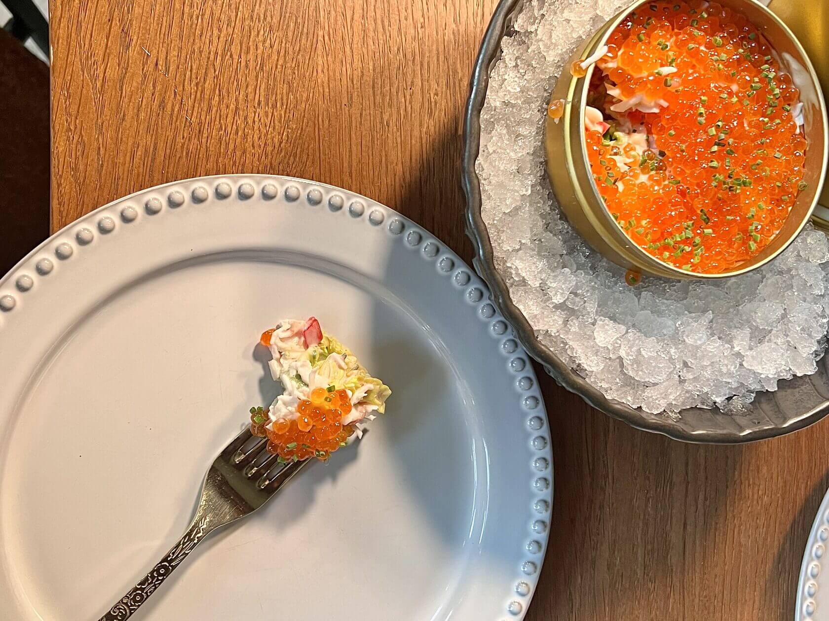 салат с крабом, красной икрой и ромейном (1750р.)