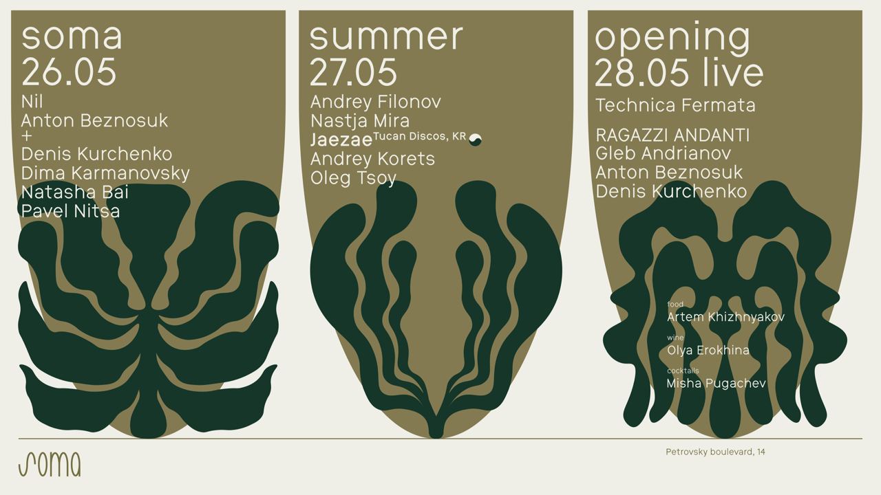 Озорники из Soma затеяли провести трехдневный фестиваль гедонистических удовольствий на своей секретной веранде. Планируется вечеринка с друзьями и резидентами бара, вечер живой музыки и специальный гость из Кореи.